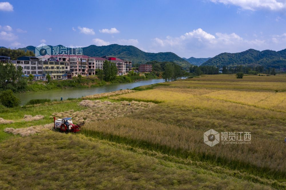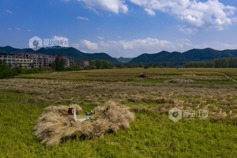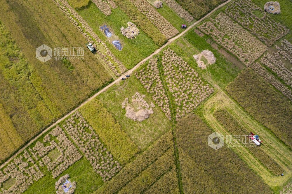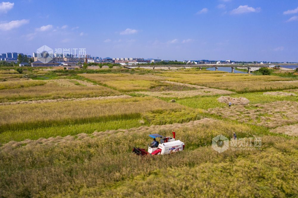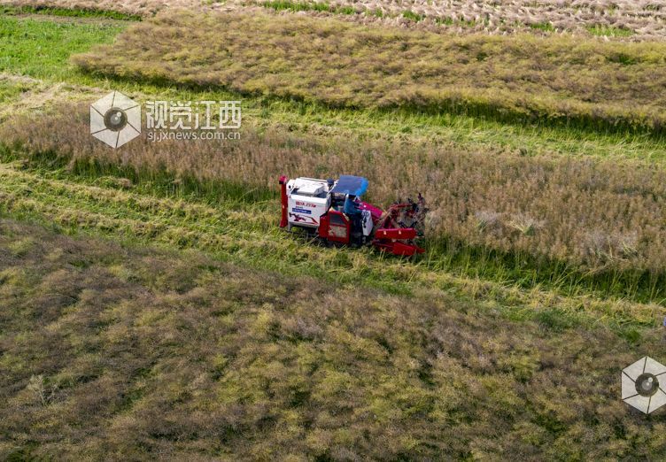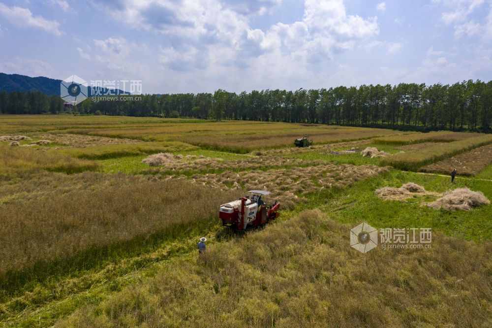 初夏时节,江西省九江市各农机合作社抓住晴好天气进行机割抢收,确保油菜丰产丰收。