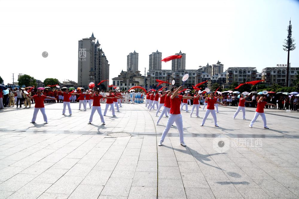 开幕式结束后,运动员们进行了体育展示演出,其中有太极拳展示:八法五步、广场舞“最美中国”、瑜伽、陈式太极扇、佳木斯健身操、方巾柔力球、太极剑、旗袍秀“我爱你中国”、广场舞“祝福你,盛世中国”等,老年运动员的精彩表演,不时获得观众阵阵掌声。体育展示后,县老年体协组织21个广场舞代表队进行了广场舞比赛。