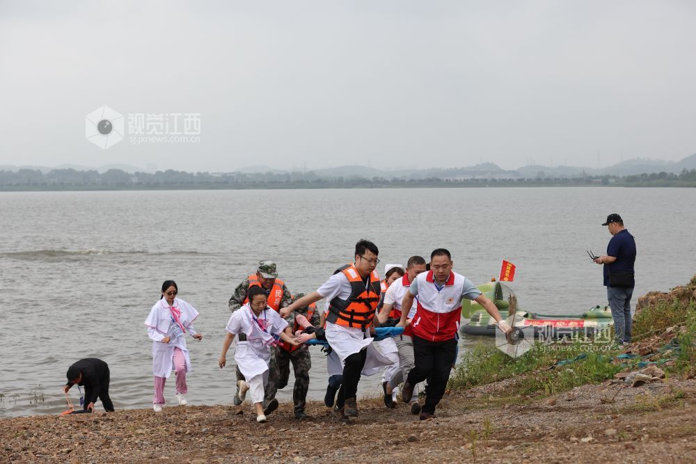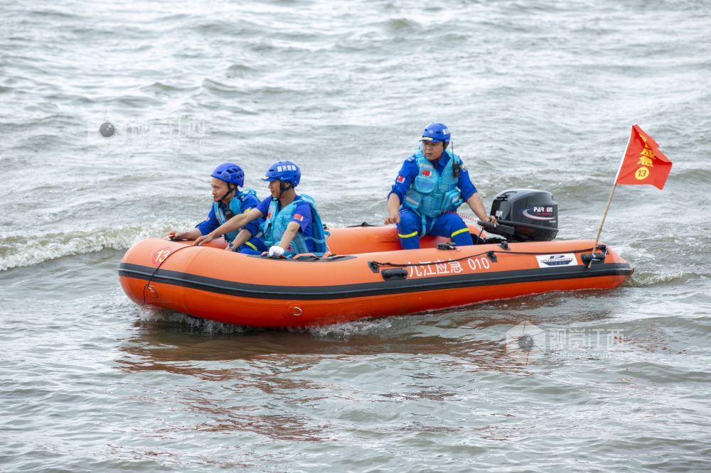 2021年5月12日,江西省瑞昌市组织防汛应急救援相关部门人员在该市赤湖水域开展防汛救援应急演练。