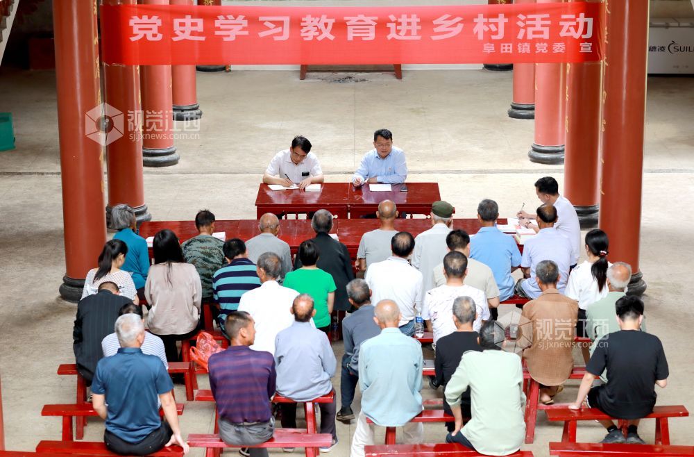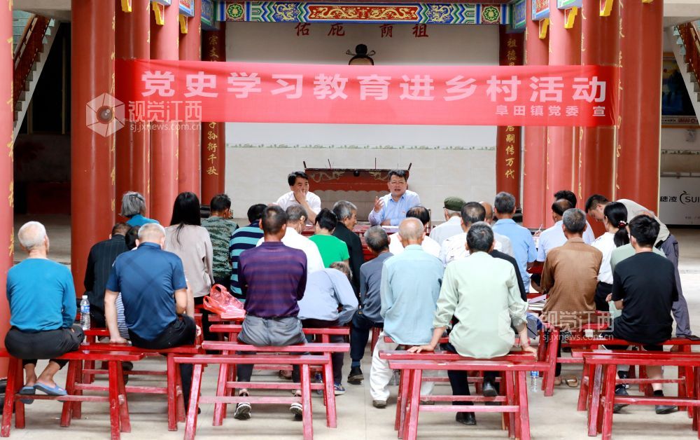 2021年5月14日,江西省吉安市吉水县阜田镇竹园村罗家祠堂,一场别开新面的“学党史、听党话、跟党走”主题宣讲活动走进乡村,全村新老党员认真听取党史教育。