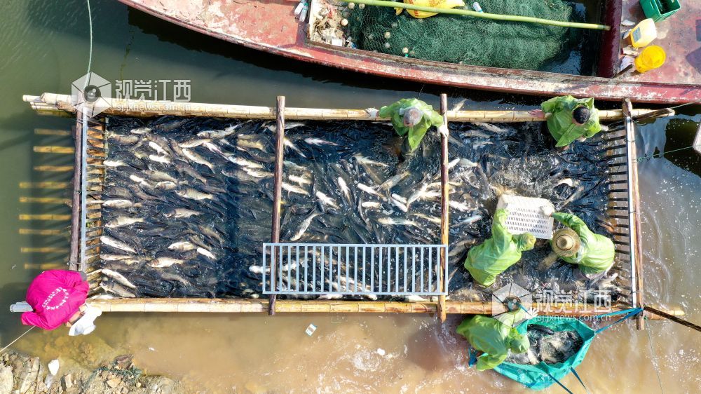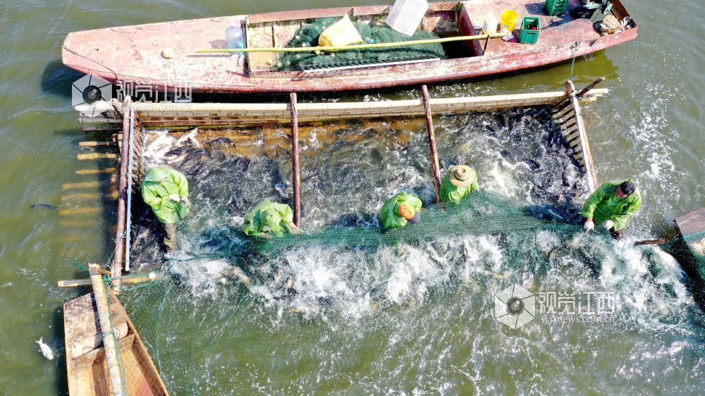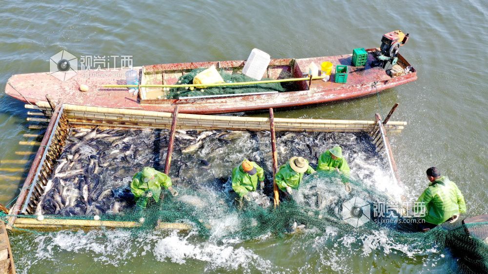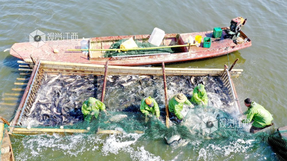 2021年5月15日,江西省吉安市吉水县阜田镇双山水库,渔民正在打渔,鱼跃人欢,一派丰收景象。