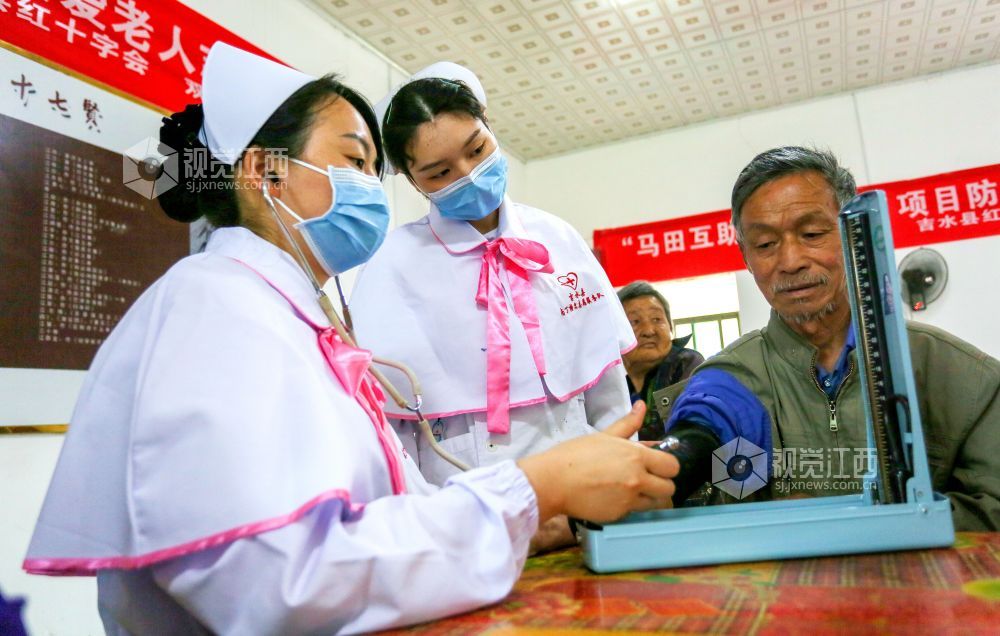 2021年5月28日,江西省吉水县红十字会及县南丁格尔志愿服务队的志愿者来到该县双村镇马田村,为村民进行免费体检,同时还为村中困难群众送来大米、食用油等慰问品,受到当地百姓的一致好评。
