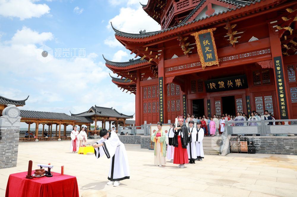 2021年6月12日,江西省吉安市吉水县的中国进士文化园区里,汉服爱好者们怀着一种崇敬的心情,在这里以传统礼仪游园、表演、祭祀屈原。