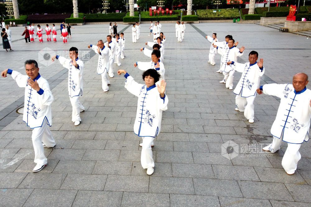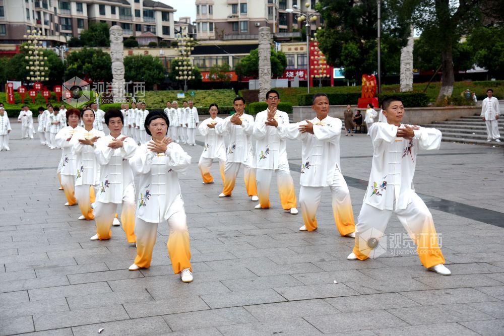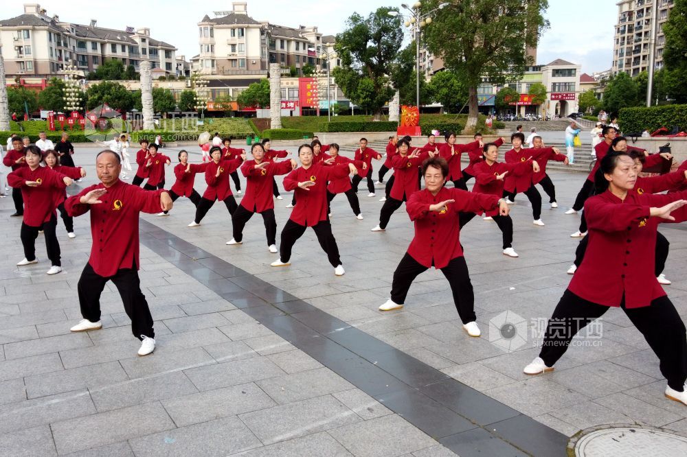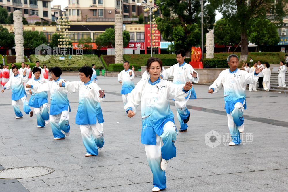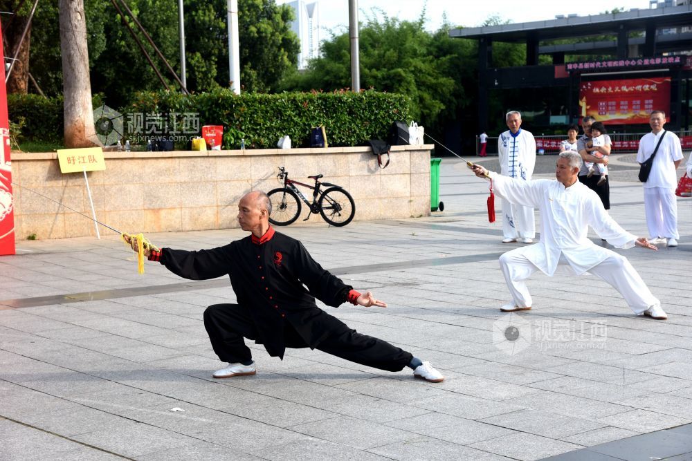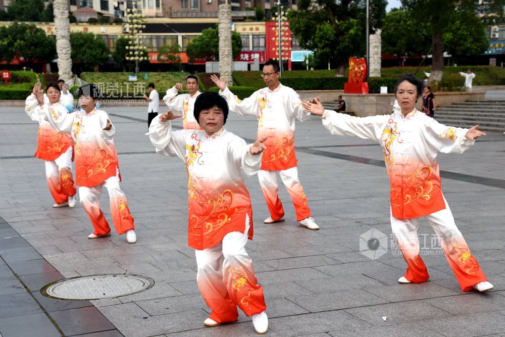 2021年6月27日,江西省抚州市南丰县桔都文化广场,县老年体协运动员在参加南丰县第七届老年人健身体育运动会太极拳(剑)比赛,充分展示了老年人健康积极、乐观向上的精神风貌。