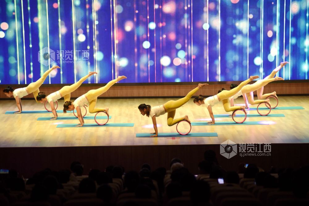 2021年6月28日晚,江西省南丰县“庆建党百年 展瑜伽风采”瑜伽展示活动在桔文化多功能演播厅进行,丰富多彩的瑜伽表演吸引众多市民和瑜伽爱好者前来观看享受。