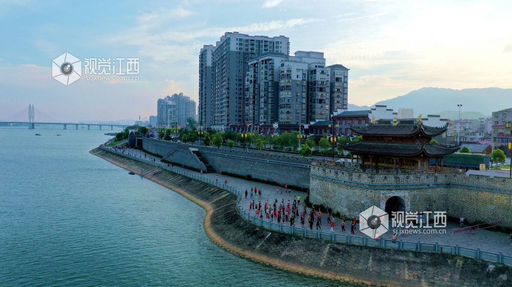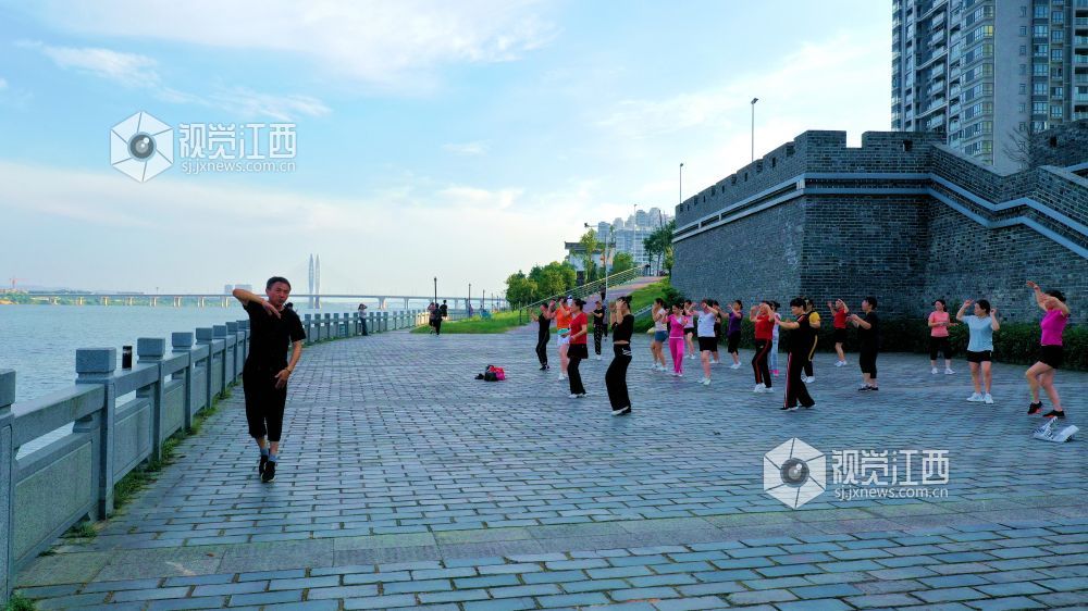 2021年7月11日,江西省吉安市吉水县赣江侧畔古城墙脚下,市民正在晨练。近年来,江西省吉安市吉水县严守资源环境生态红线,全面推行河湖长制,守护绿水青山。打造美丽生态吉水,建设赣江最美岸线。
