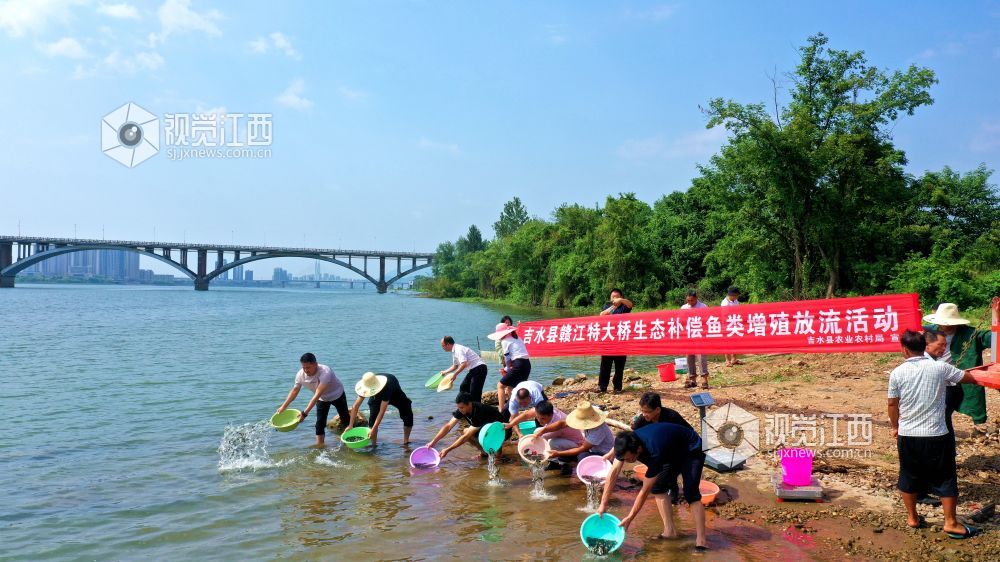 江西省吉安市吉水县自2014年起开始开展“生态补偿鱼类增殖放流”活动,到目前为止共向赣江投放青、草、鲢、鳙等四大家鱼2500万尾,极大的促进了赣江流域渔业资源恢复和水域生态环境改善。
