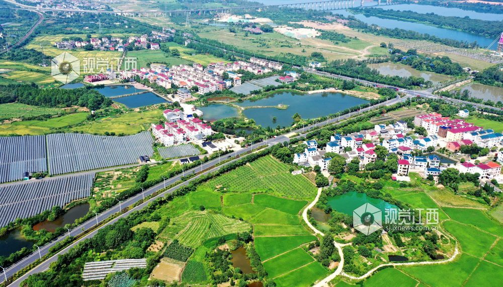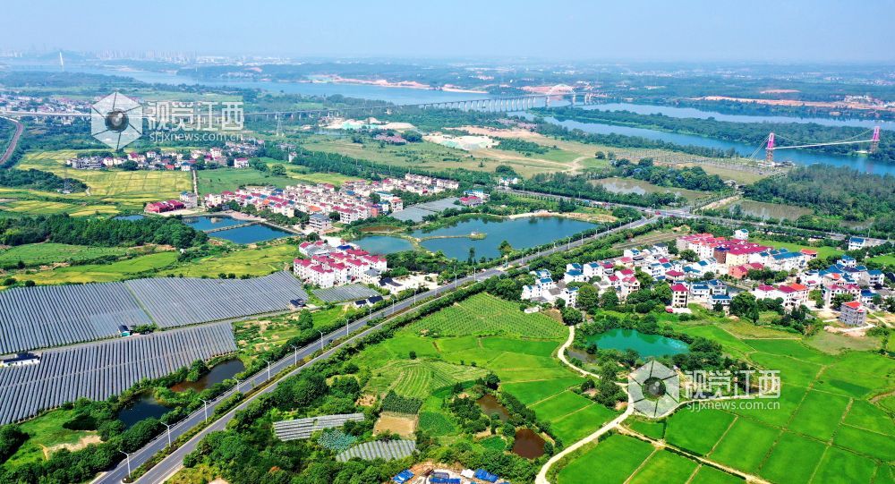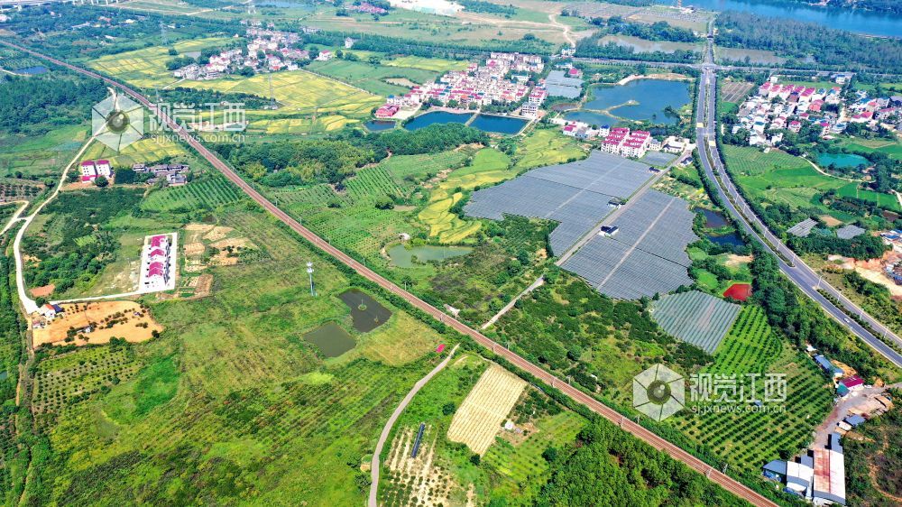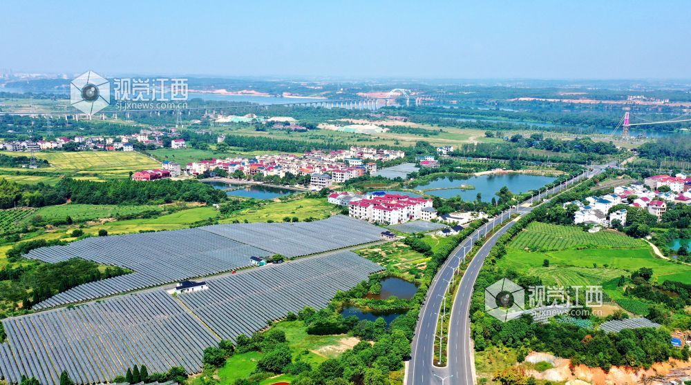 2021年8月31日,江西省吉安市吉水县文峰镇低坪村,稻田、果园、生态大棚、秀美村庄和通达的公路,构成一幅美丽的秋日田园图画。