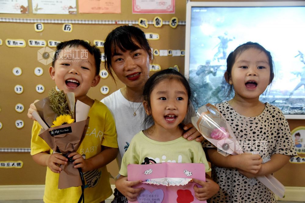 在第37个“教师节”即将来临之际,南丰县一幼儿园的小朋友通过赠送贺卡、鲜花,献上亲吻等方式报答师恩,一张张表达爱心的贺卡、一束束鲜花、一个个热吻,表达幼儿们对老师的感恩之情与祝福之意。