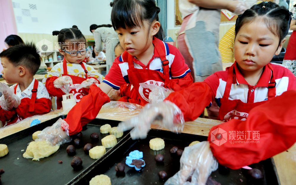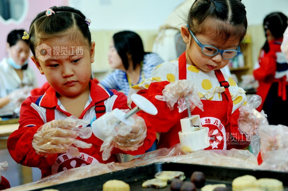 当天上午,江西省德兴市城南幼儿园的小朋友相聚一起,在老师的指导和帮助下,开开心心地做起了中秋月饼,准备亲手送给爸爸妈妈吃。据了解,这是该园利用中秋佳节到来之际开展的一项活动,旨在培养孩子们多动脑、勤动手的自治能力,深受家长们的欢迎。