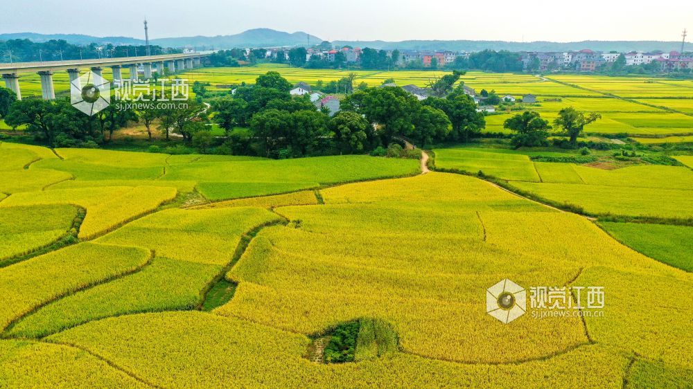 金秋时节,江西省吉安市吉水县乡村处处稻黄果熟,呈现一派丰收景象。