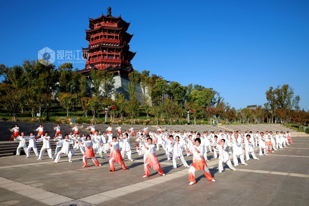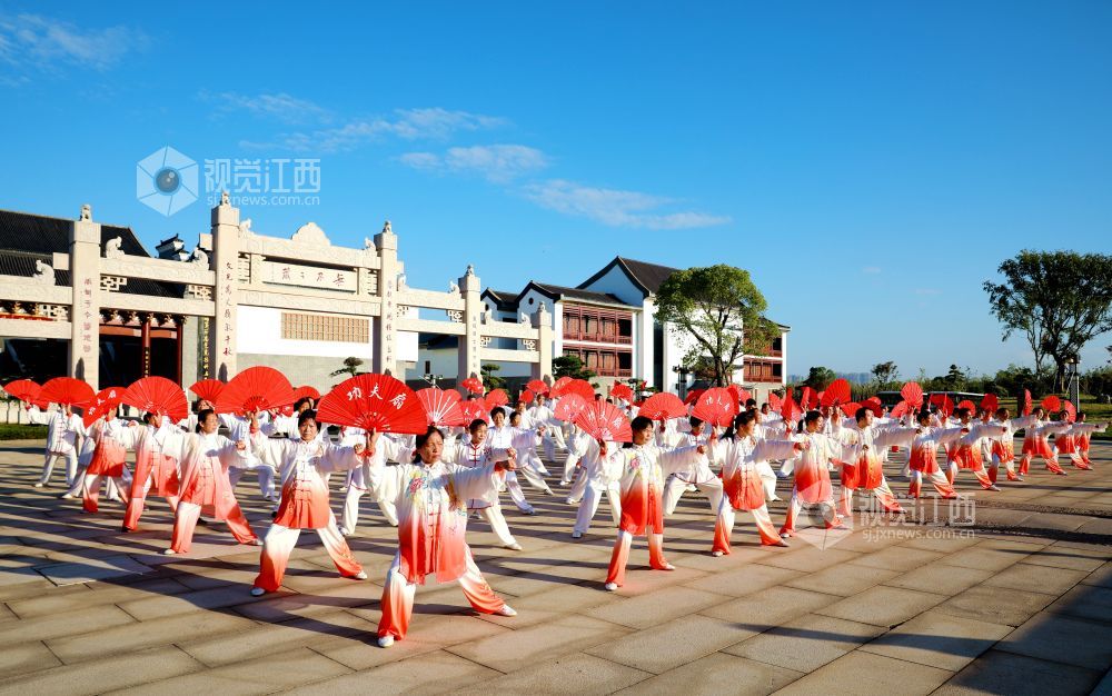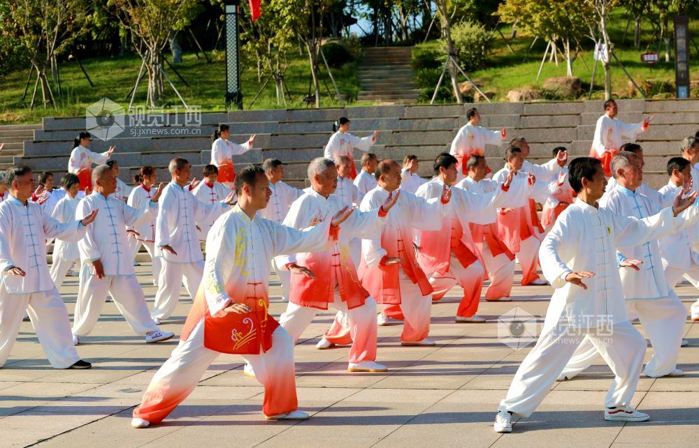 2021年10月6日,江西省吉安市吉水县中国进士文化园,一群太极爱好者正在这里晨练,一招一式大开大合,潇洒飘逸。