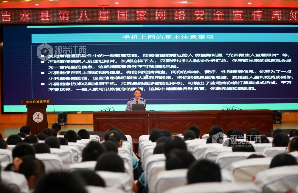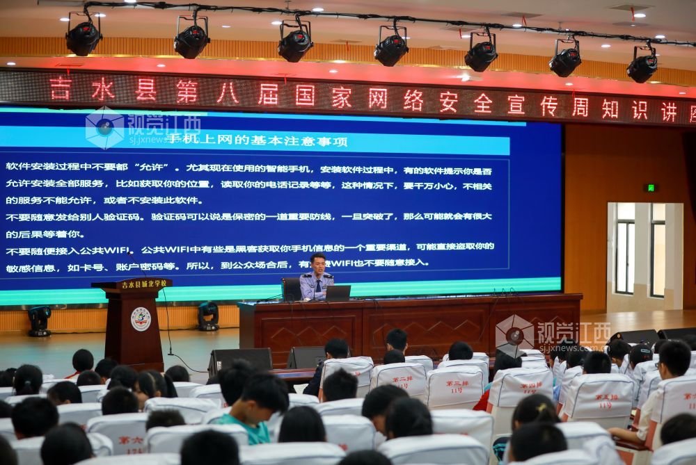 2021年国家网络安全宣传周期间,江西省吉安市吉水县组织相关工作人员走进校园,通过发放宣传手册、实例图片展示、讲座、互动等形式,全方位为在校学生进行网络安全教育。