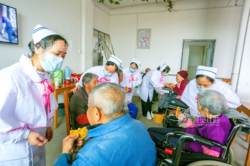 重阳佳节,江西省吉水县红十字会联合会联合枫江镇红十字会、吉水县南丁格尔志愿服务队和江西赛菲奴乡村振兴商城志愿者来到枫江镇老来乐养老院,看望、慰问养老院的老人,为老人们送去节日关怀和温暖。