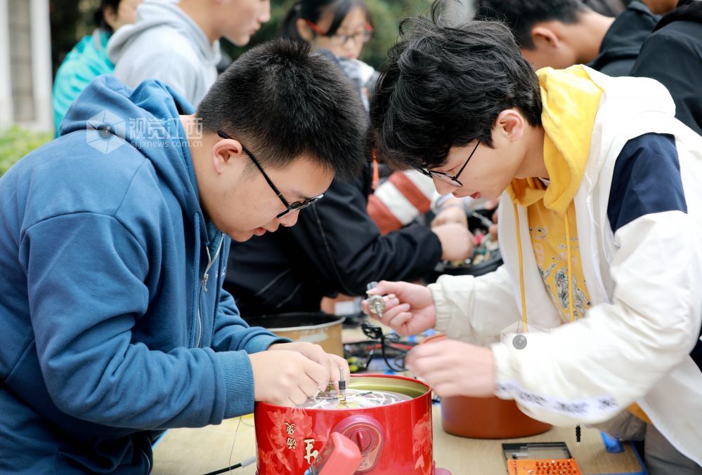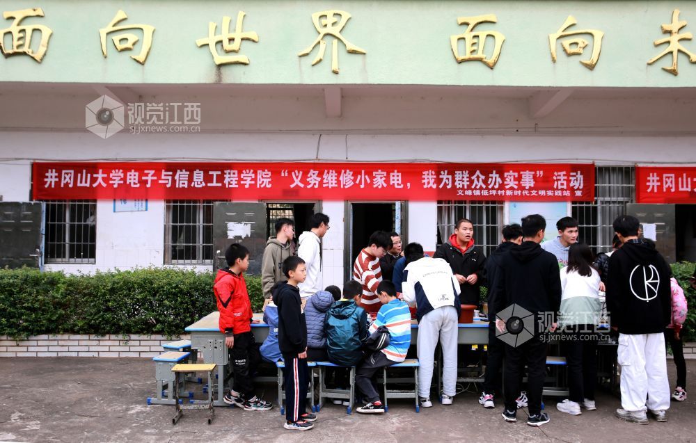 2021年10月23日,江西省吉安市吉水县文峰镇低坪村,井冈山大学的学生正在为村民义务修理家用电器。