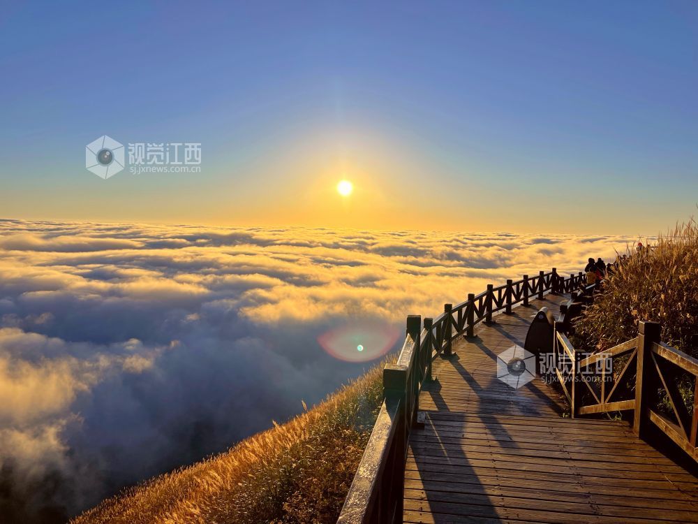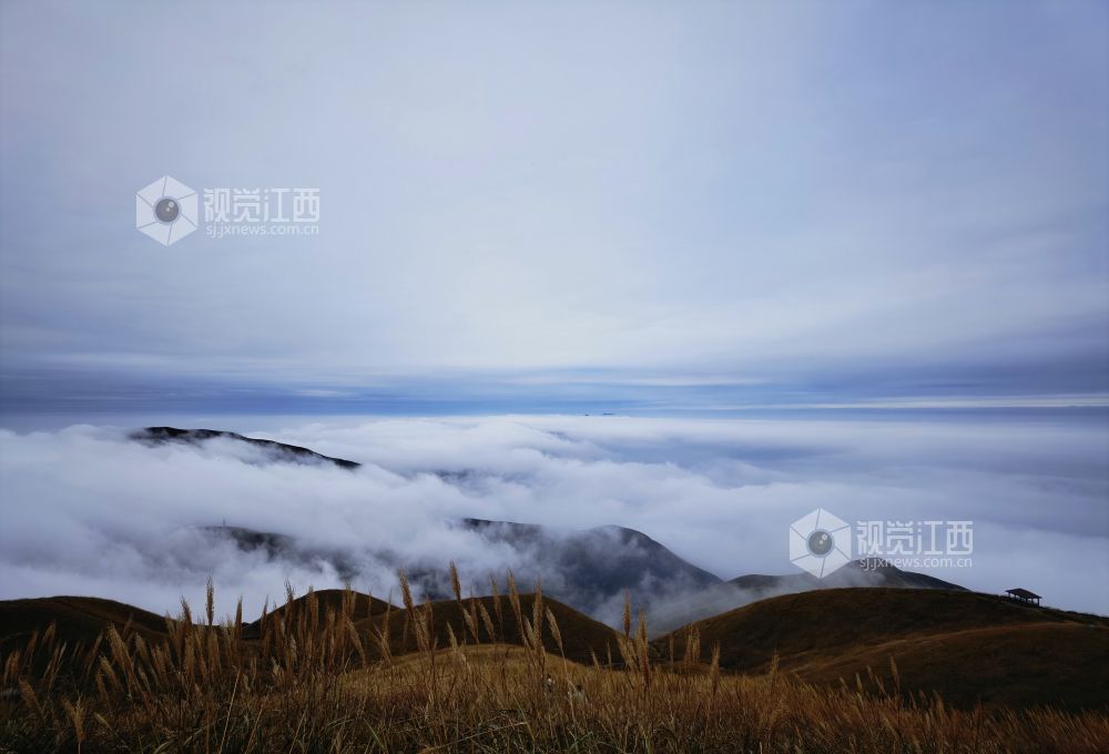 2021年10月24日,深秋时节,江西省萍乡市武功山景区十万亩高山草甸披上了金黄的盛装,晨光普照,云雾缭绕,风景秀美。