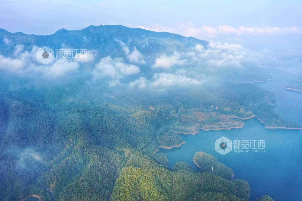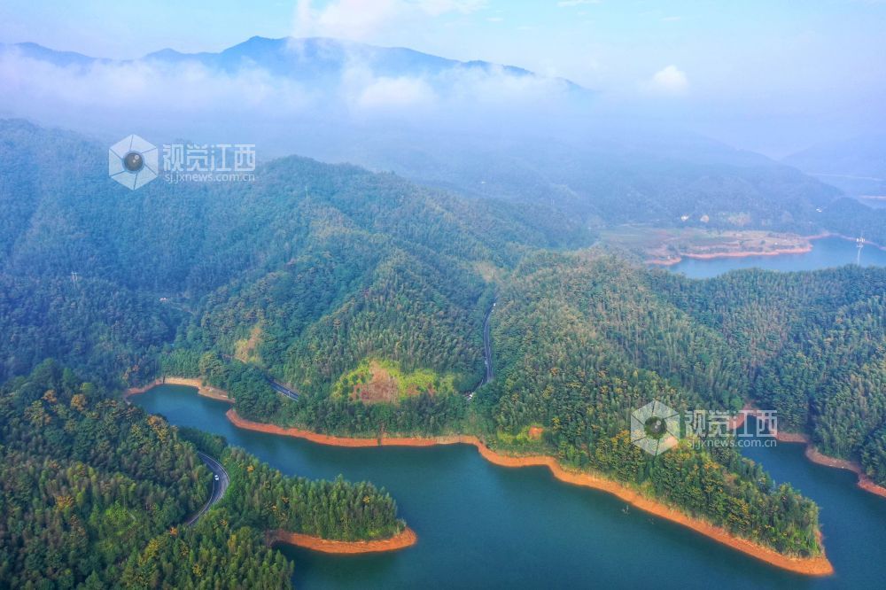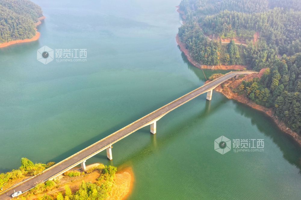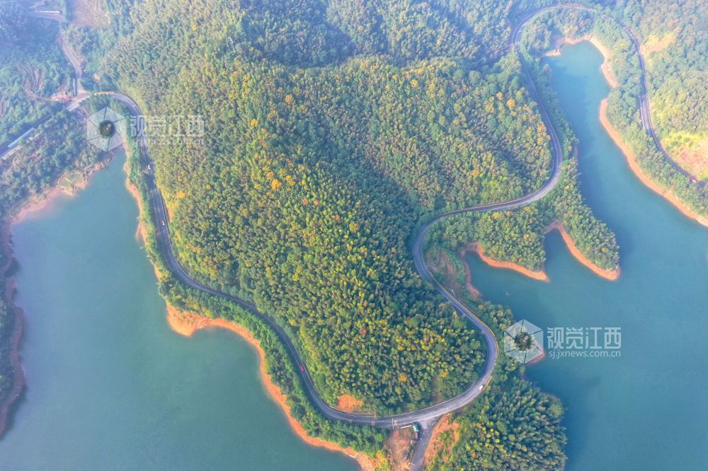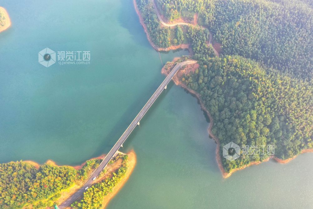 2021年10月30日,无人机航拍江西省萍乡市芦溪县上埠镇山口岩水库,秋景美如画。