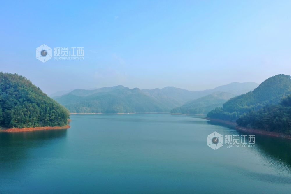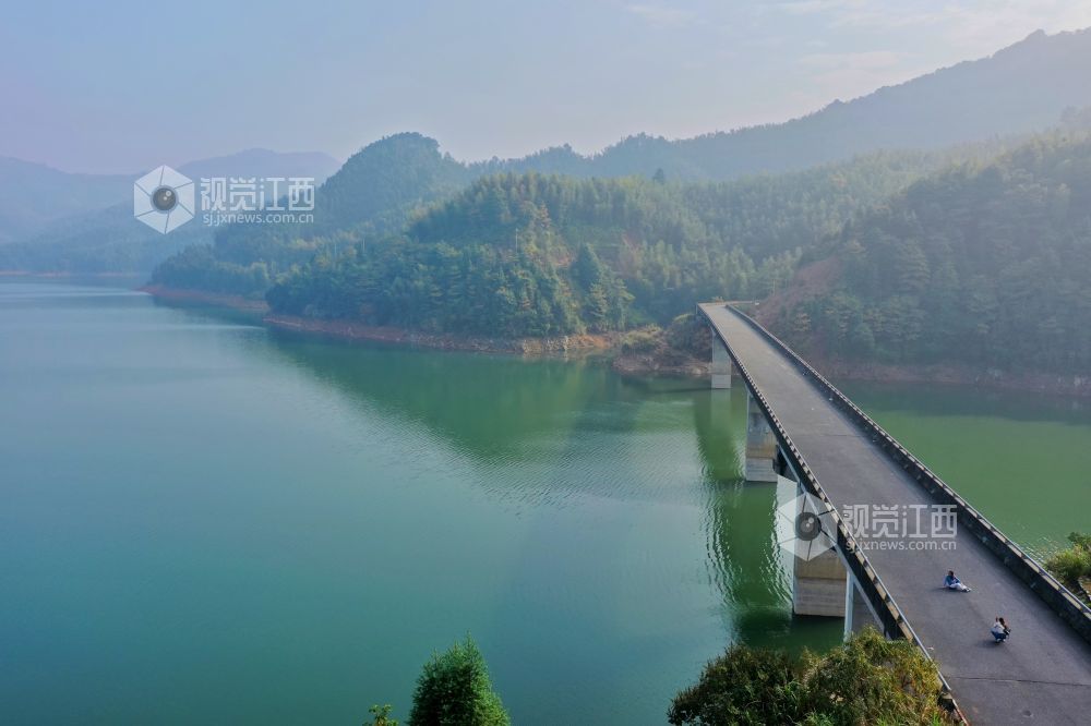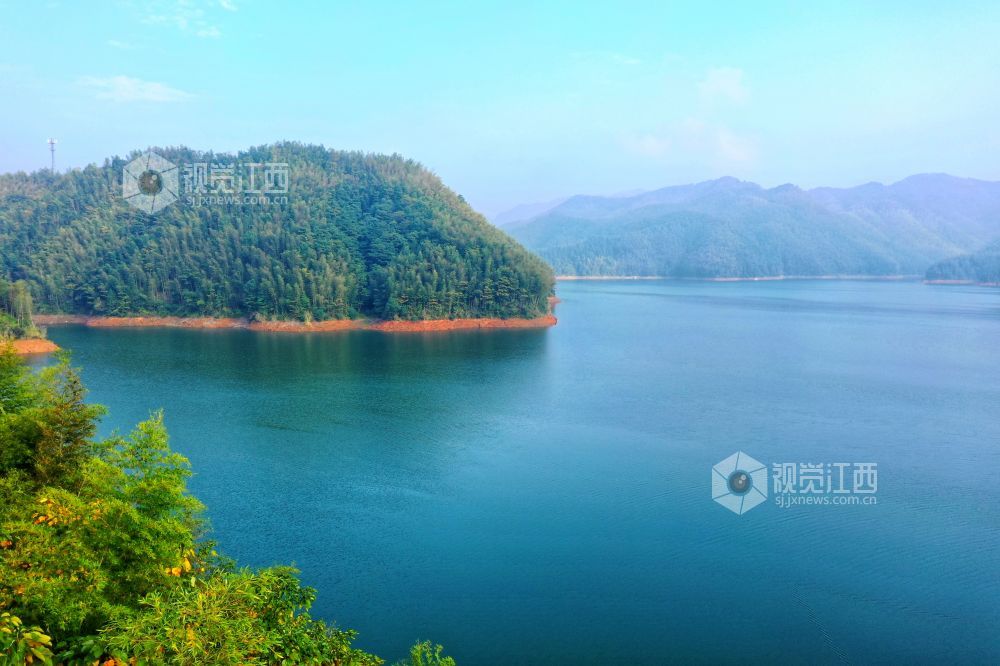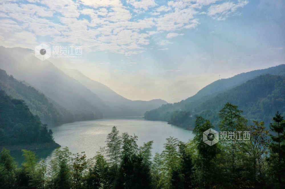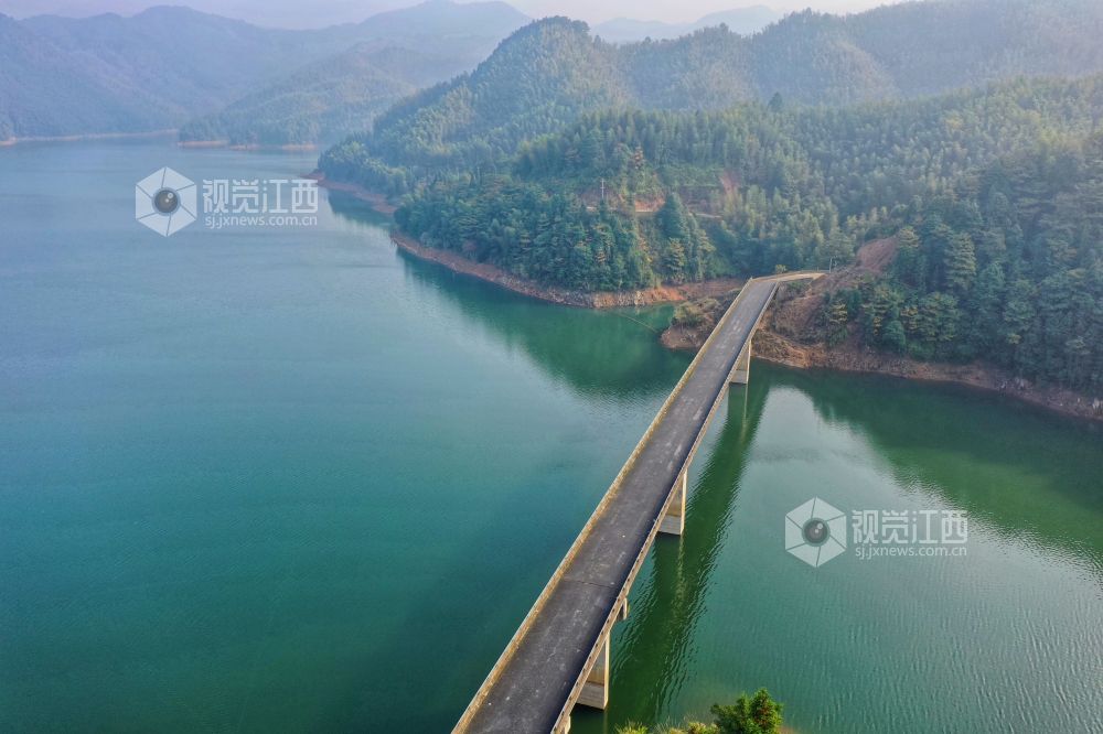 2021年10月30日,无人机航拍江西省萍乡市芦溪县上埠镇山口岩水库,秋景美如画。