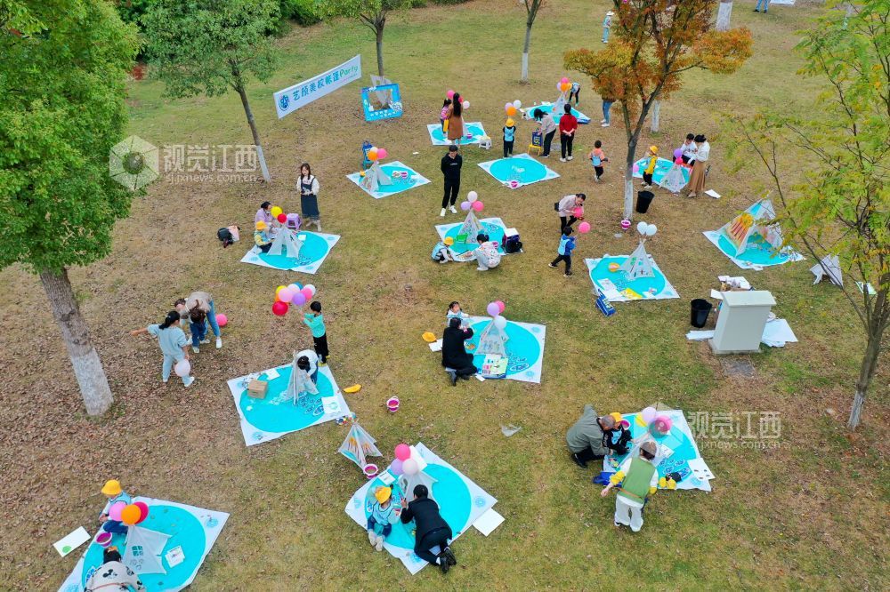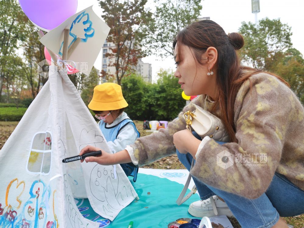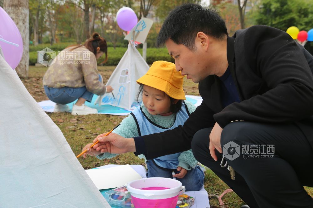 2021年10月31日,江西省萍乡市芦溪县芦洲湿地公园,不少家长带孩子在此开展户外亲子活动,小朋友与父母通过画画的互动,加强了彼此之间的沟通,共同享受趣味画画带来的快乐。