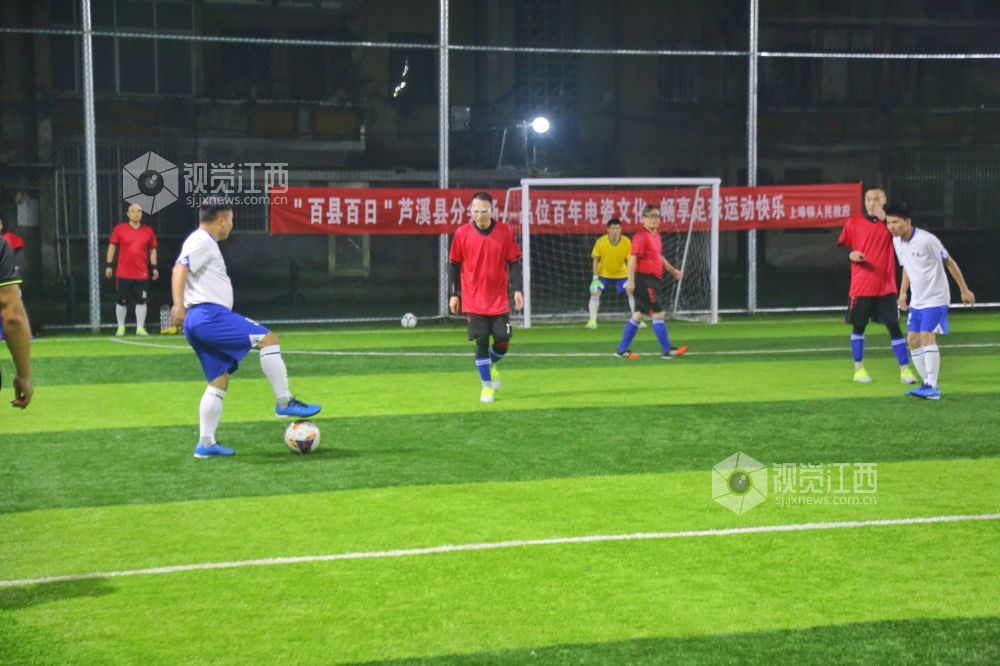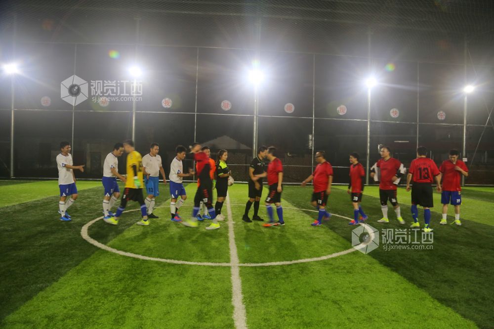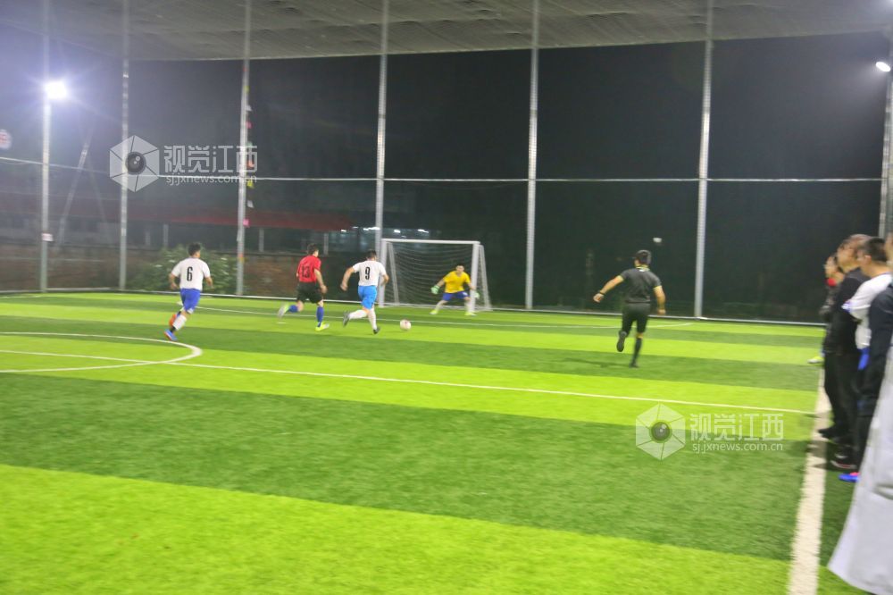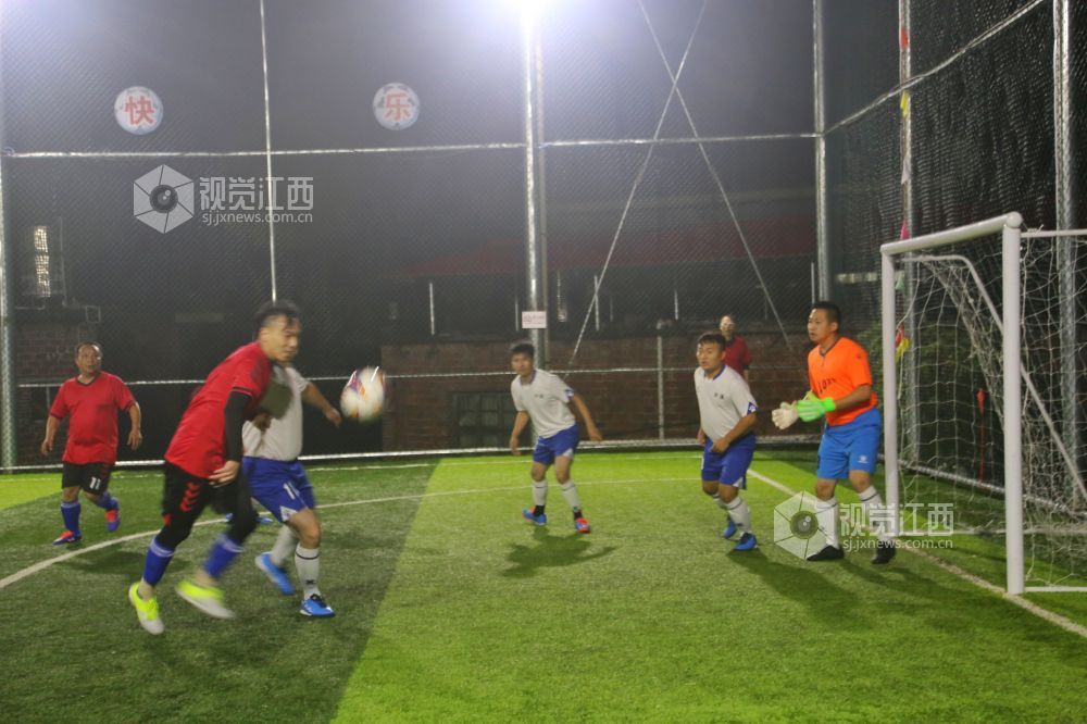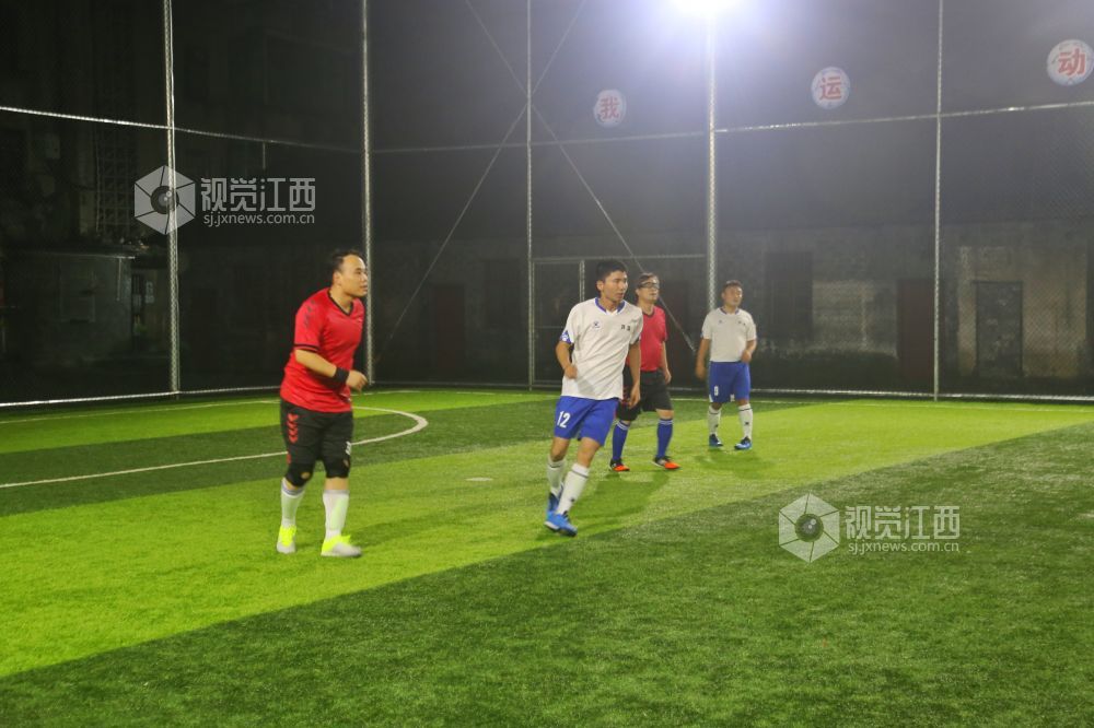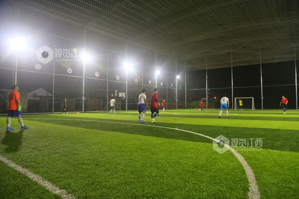 2021年11月4日,江西省萍乡市芦溪县上埠镇室内足球场灯火通明,市民在进行足球比赛。