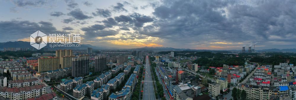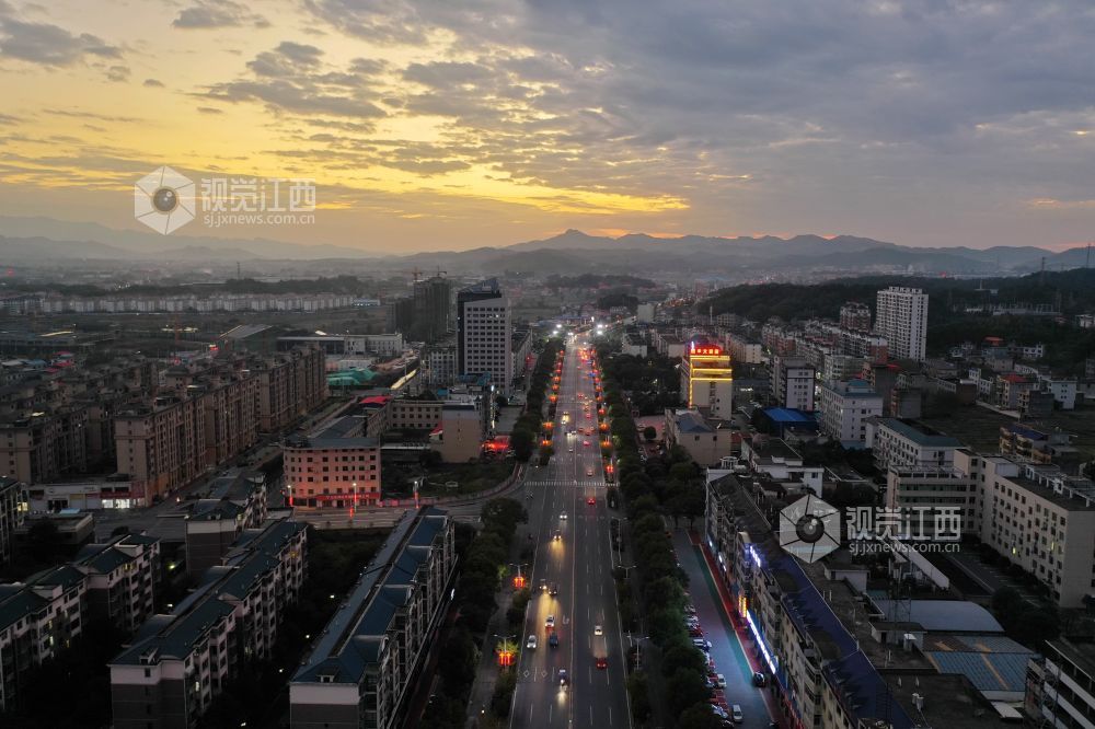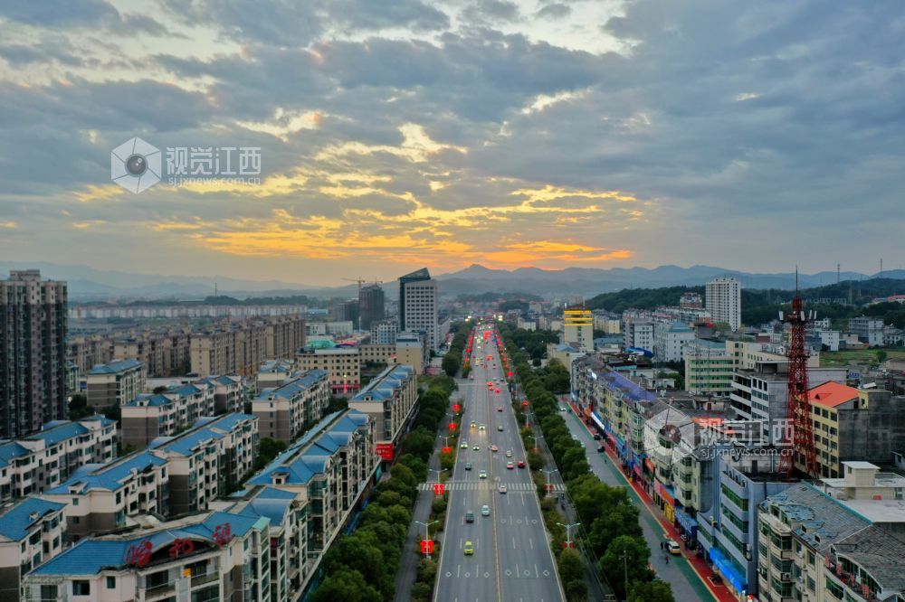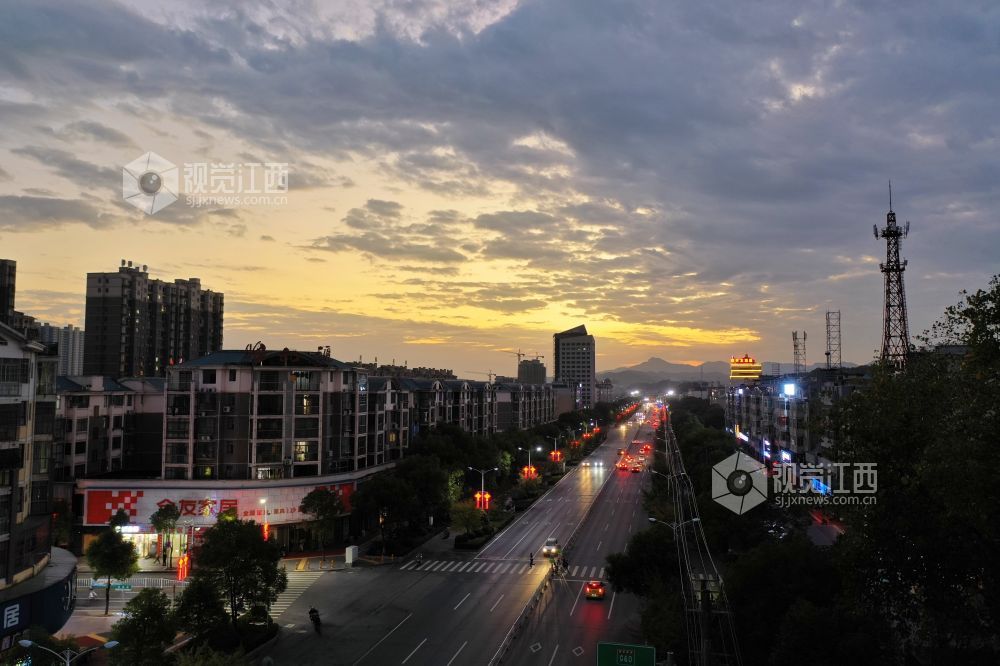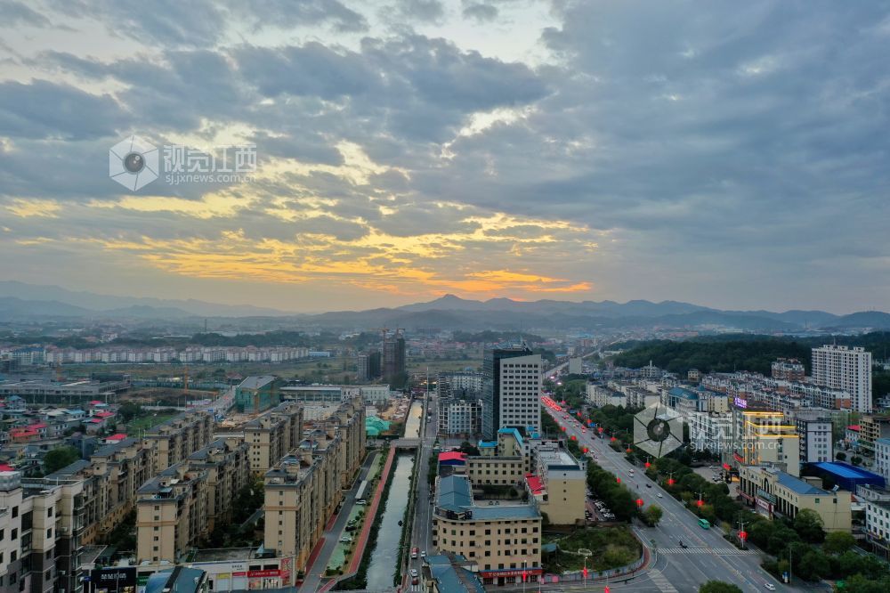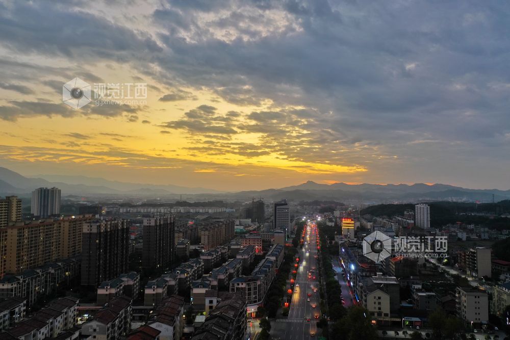 2021年11月9日,傍晚时分,江西省萍乡市芦溪县城上空出现了绚丽灿烂的晚霞,夕阳余晖洒落县城光彩夺目。