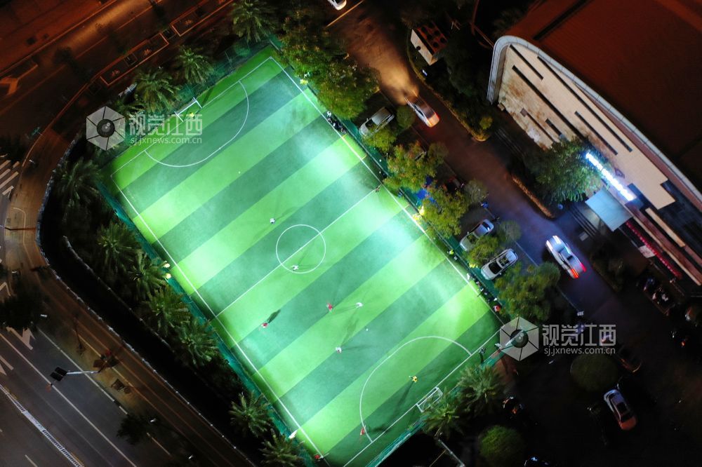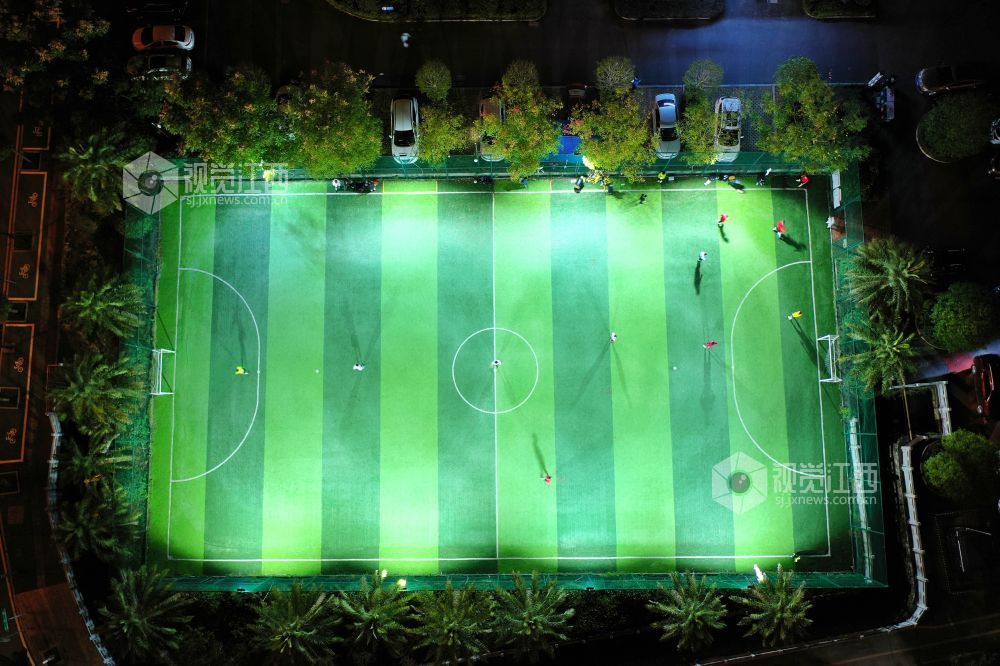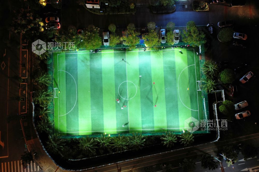 2021年11月9日晚,江西省萍乡市芦溪县体育场灯火通明,市民正在运动健身。