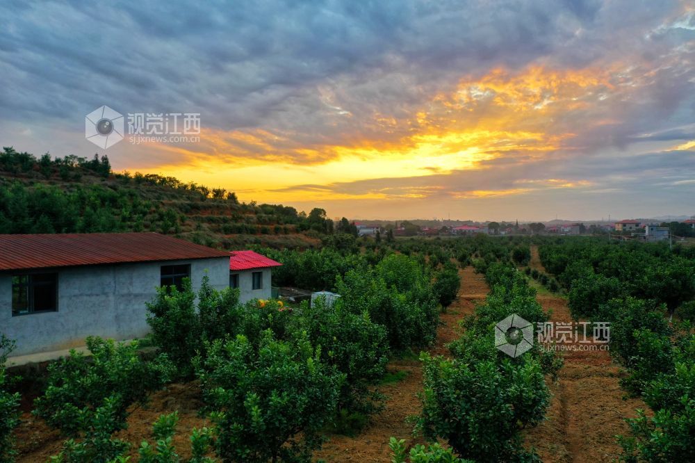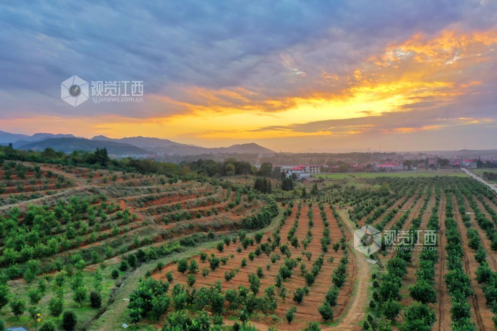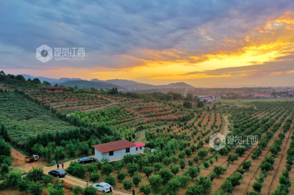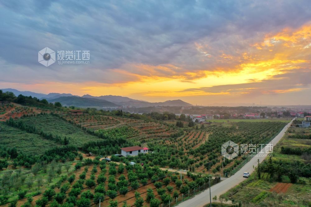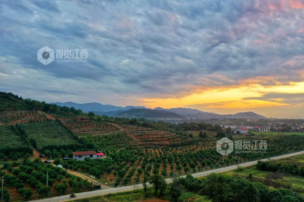 2021年11月11日,无人机航拍江西省萍乡市芦溪县宣风镇盘田村盘甜果园基地,盘田村采用“党支部+公司+基地+农户”的模式,推进观光采摘为一体的特色果园建设,目前该果园达到300多亩,实现农业增效、农民增收,助力乡村振兴。