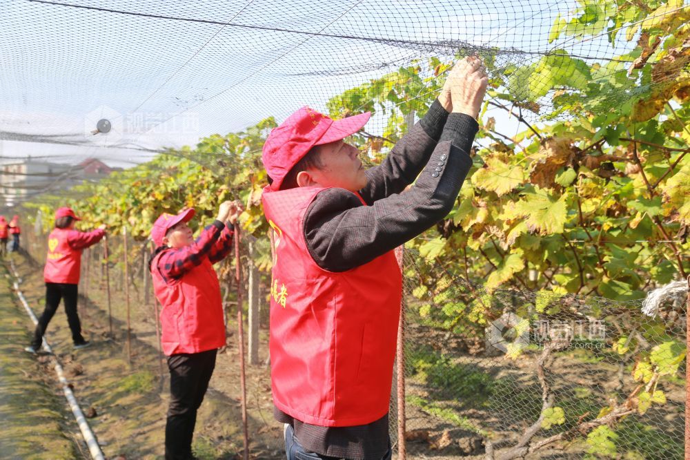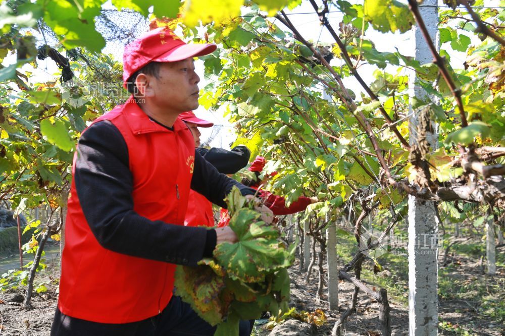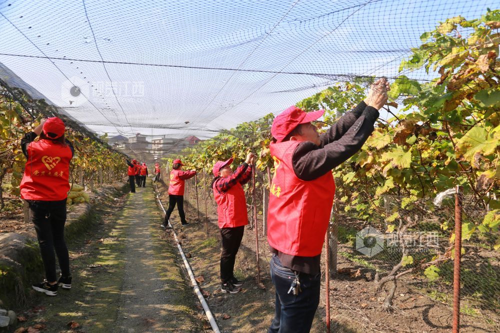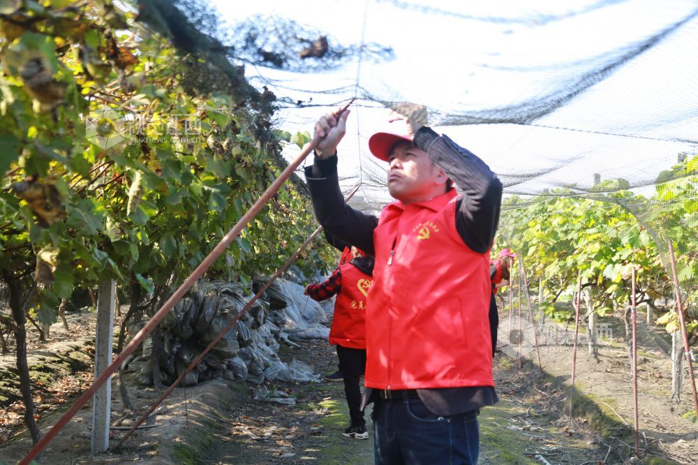 2021年11月12日,江西省萍乡市芦溪县芦溪镇高楼村党员志愿服务队帮助农户修整葡萄园。今年以来,江西省萍乡市芦溪县积极开展““我为群众办实事”主题活动,全县党员干部活跃在田间地头、生产一线,访民情、解民忧、帮民困。