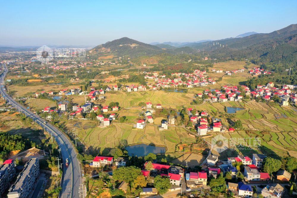 2021年11月14日,无人机航拍江西省萍乡市芦溪县芦溪镇丰泉村一带,初冬田园风景美如画。