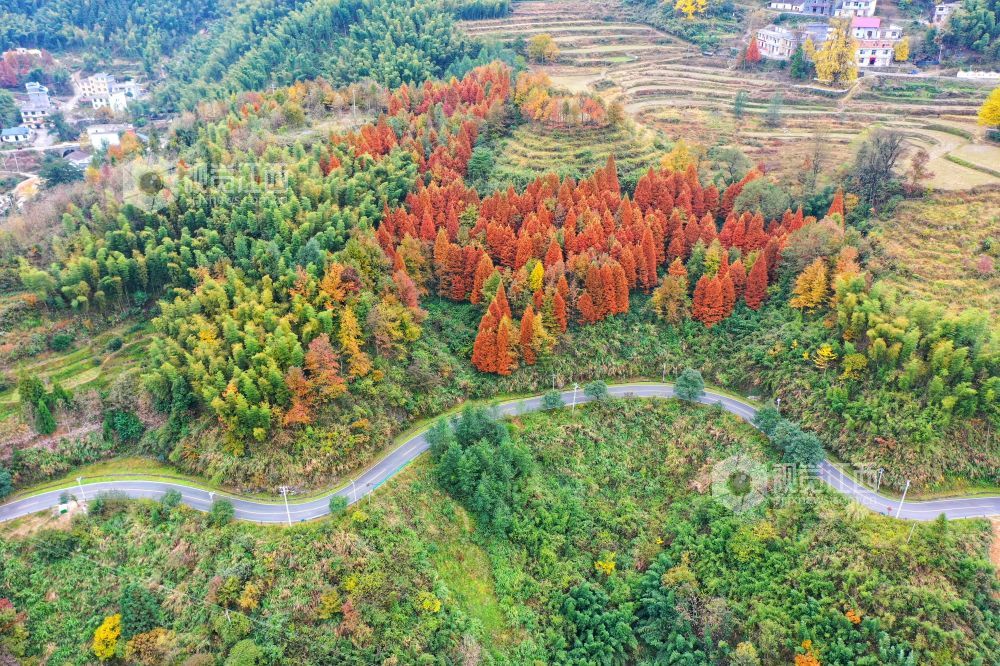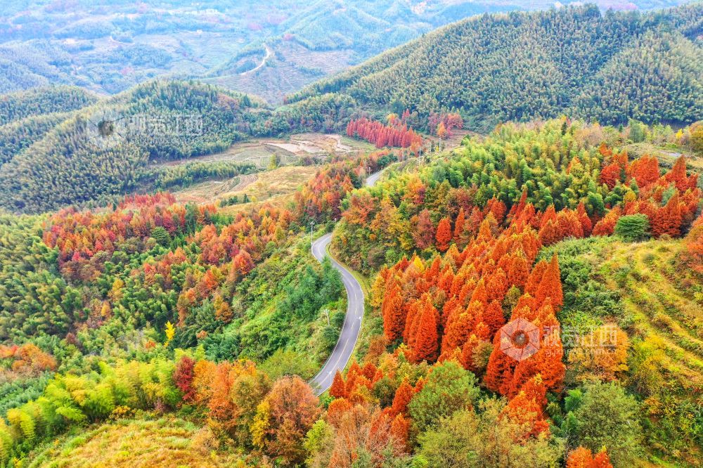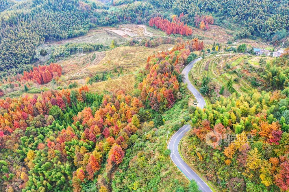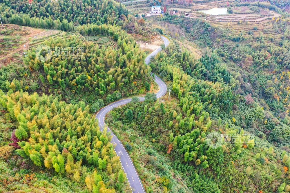 2021年11月16日,无人机航拍江西省萍乡市武功山万龙山乡槽下村路段的“四好农村路”。