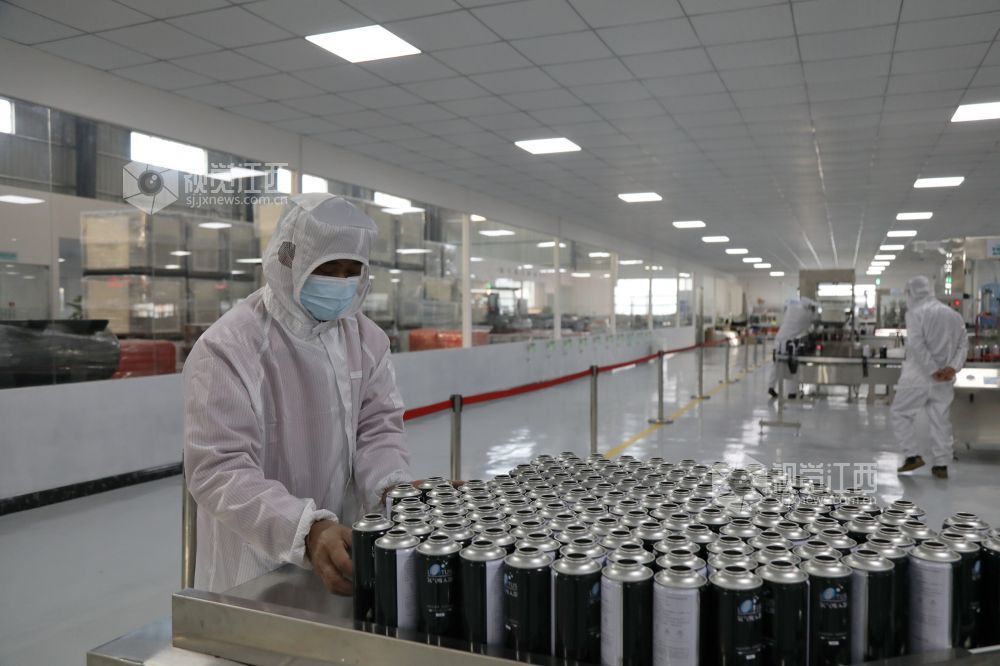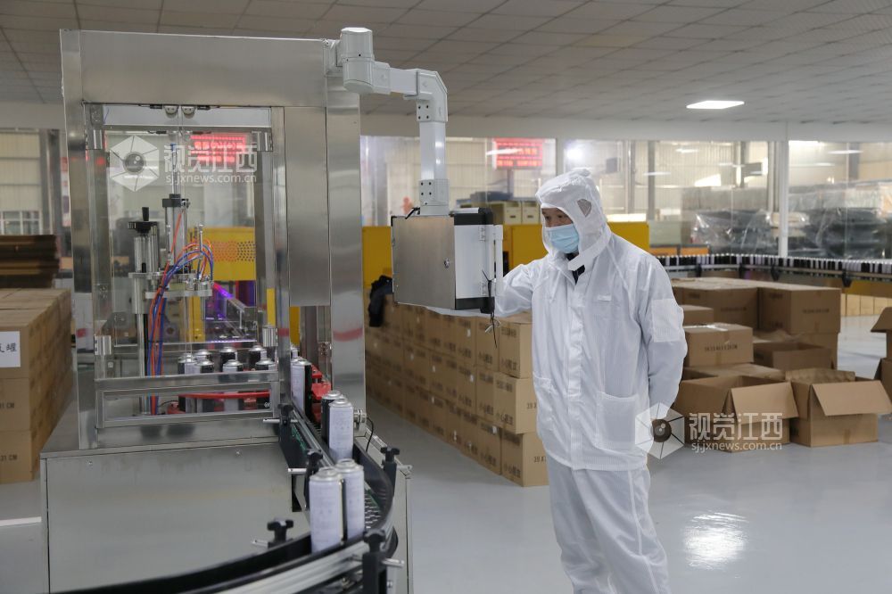 11月19日,江西省莲花县工业园一公司车间,工人正在加紧生产氧气制品,供应国外市场。