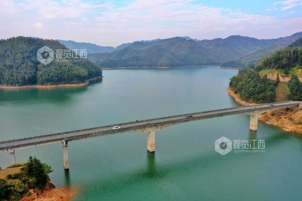 2021年11月28日,航拍江西省萍乡市芦溪县上埠镇山口岩水库王源大桥。近年来,江西省萍乡市芦溪县牢固树立“绿水青山就是金山银山”理念,始终坚持“绿色发展、生态优先”,大力推进山、水、林、田、湖、草综合整治,绿水青山好风光。
