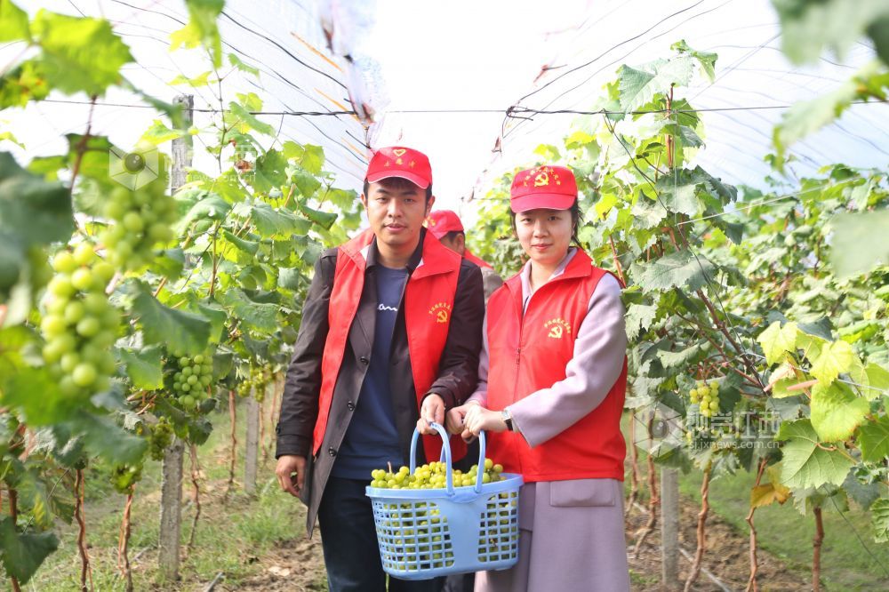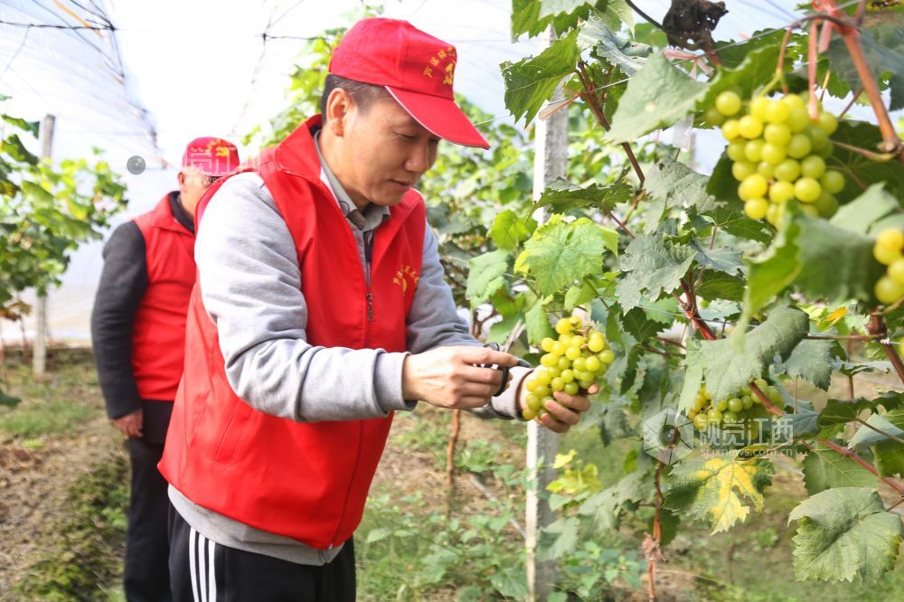 2021年11月30日, 江西省萍乡市芦溪县芦溪镇东阳村葡萄产业基地的葡萄喜获丰收,东阳村党员志愿者帮助农户采摘葡萄,助力农户增收致富。