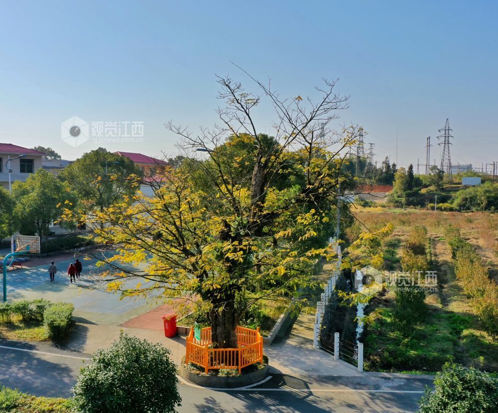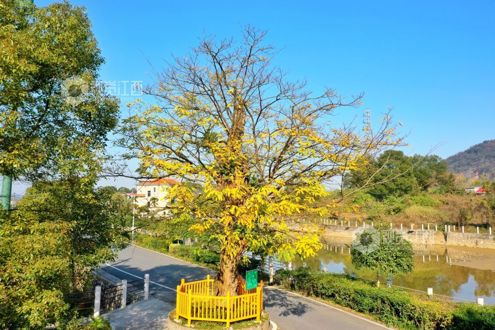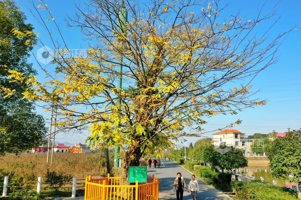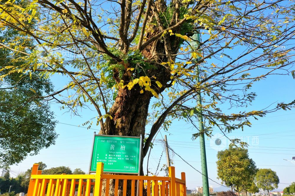 2021年12月2日,江西省萍乡市芦溪县芦溪镇东阳村千年古檀。据悉,这棵古黄檀已有1100余年树龄,树高8米,冠径3米。每年11月中下旬,金黄色的黄檀树迎来最佳观赏期。