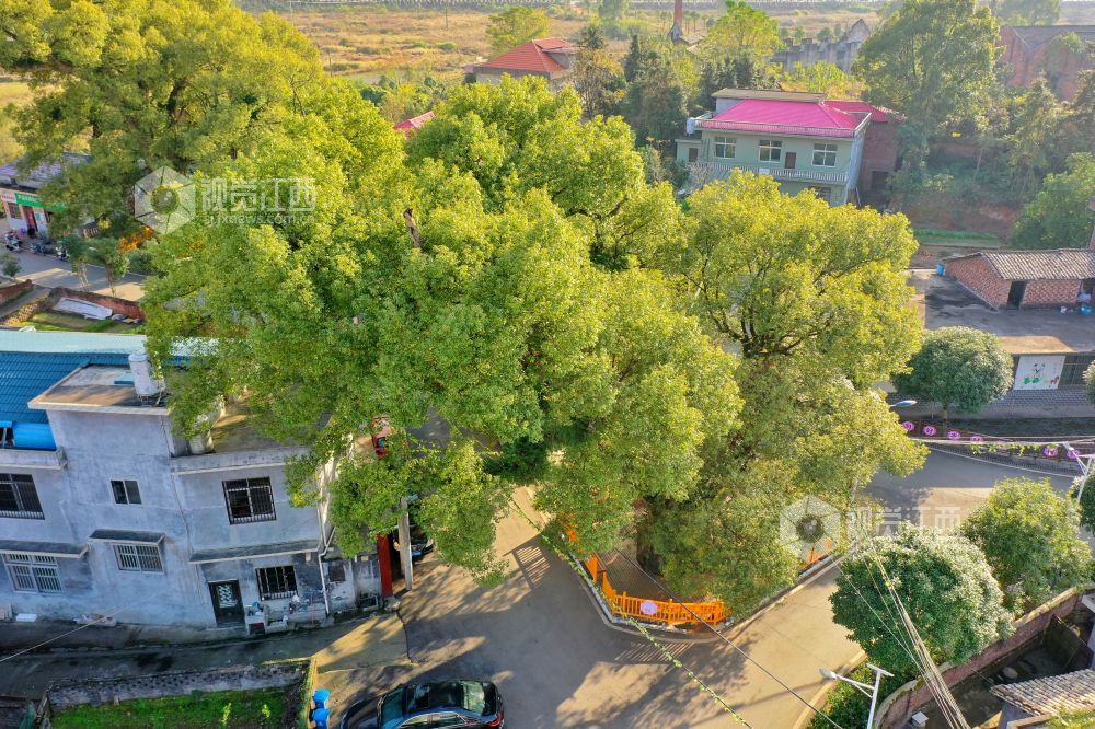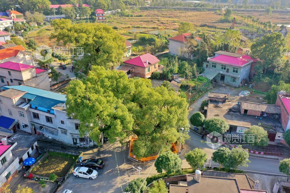 2021年12月2日,无人机航拍江西省萍乡市芦溪县芦溪镇东阳村千年古樟,枝繁叶茂。