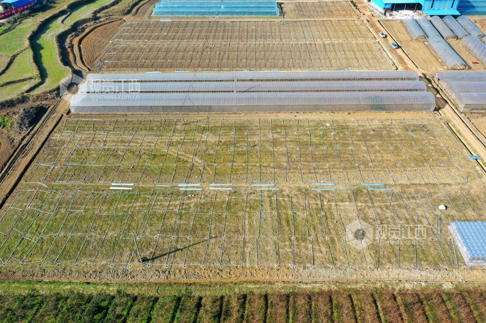 2021年12月2日,江西省萍乡市芦溪县芦溪镇东阳村大棚蔬菜产业基地正在紧张地施工建设。