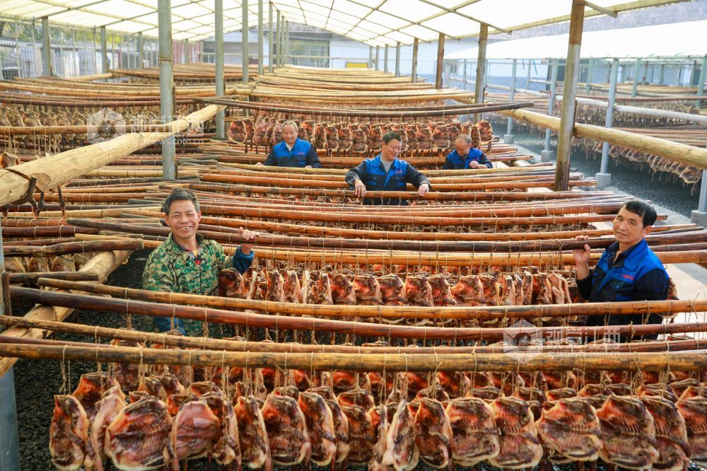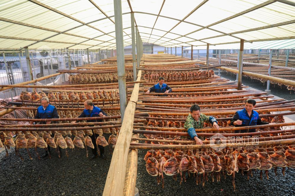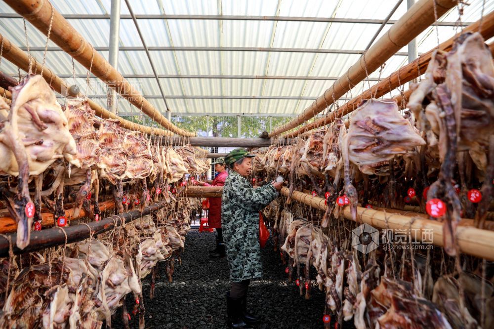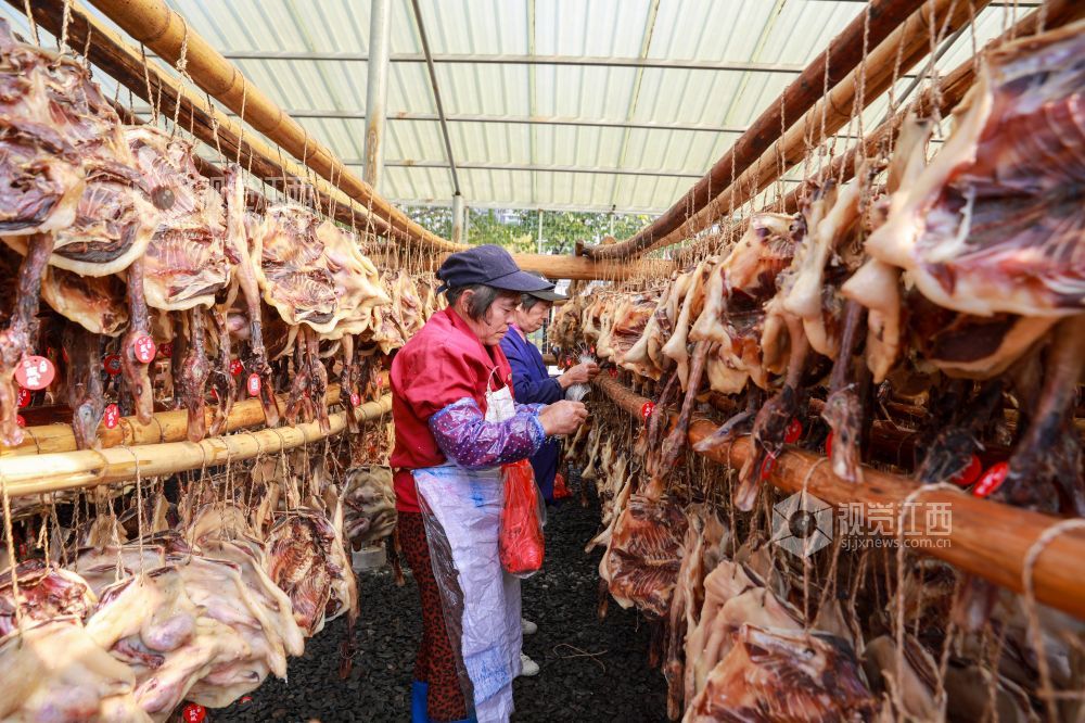 江西省吉安市吉水县八都镇一直都有制作板鸭的传统。近年来,当地企业整合优势资源,采用“公司+党建+农户”模式,充分发挥致富带头人的引领作用,形成孵化、饲养、生产制作、销售的一条龙产业链。今年全镇预计可生产优质板鸭300余万只,实现产值1.5亿元,有力的带动当地群众增收致富,助力乡村振兴。