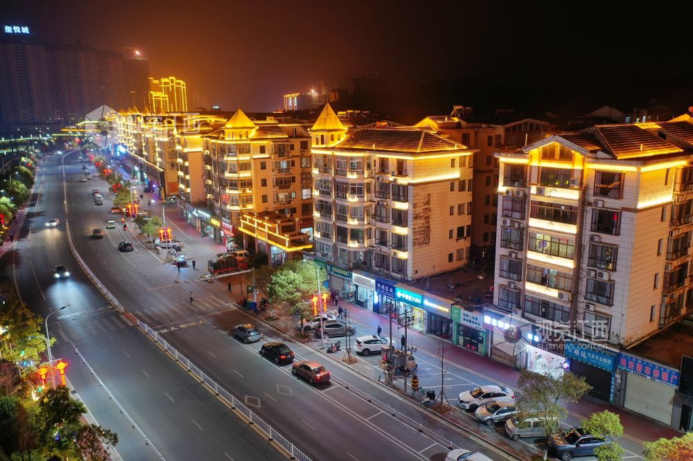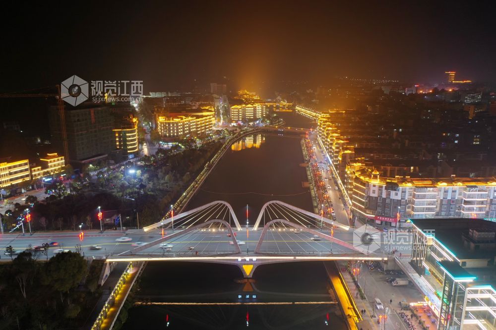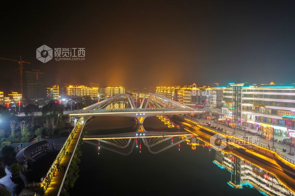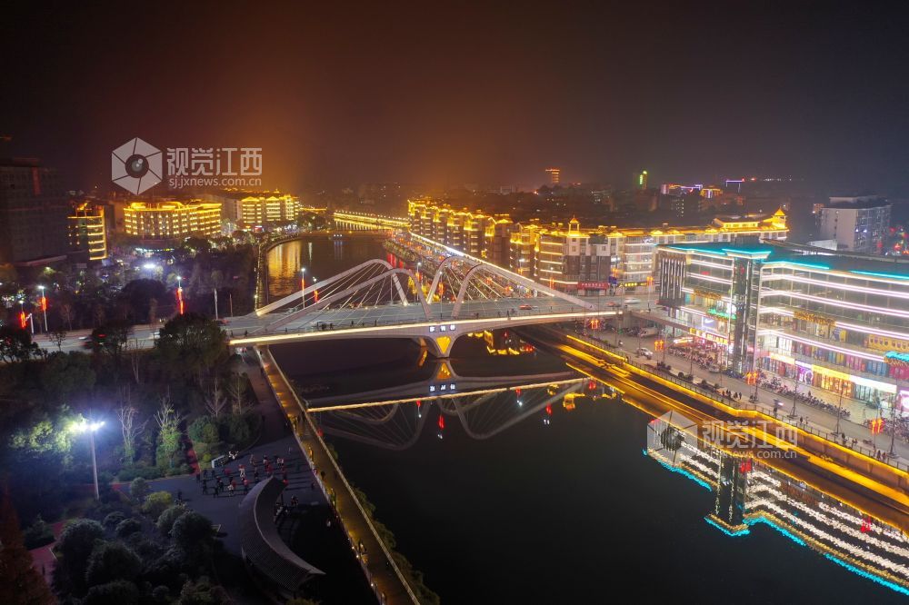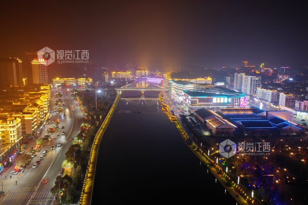 2021年12月10日,无人机航拍江西省萍乡市芦溪县袁河夜景,璀璨夺目。