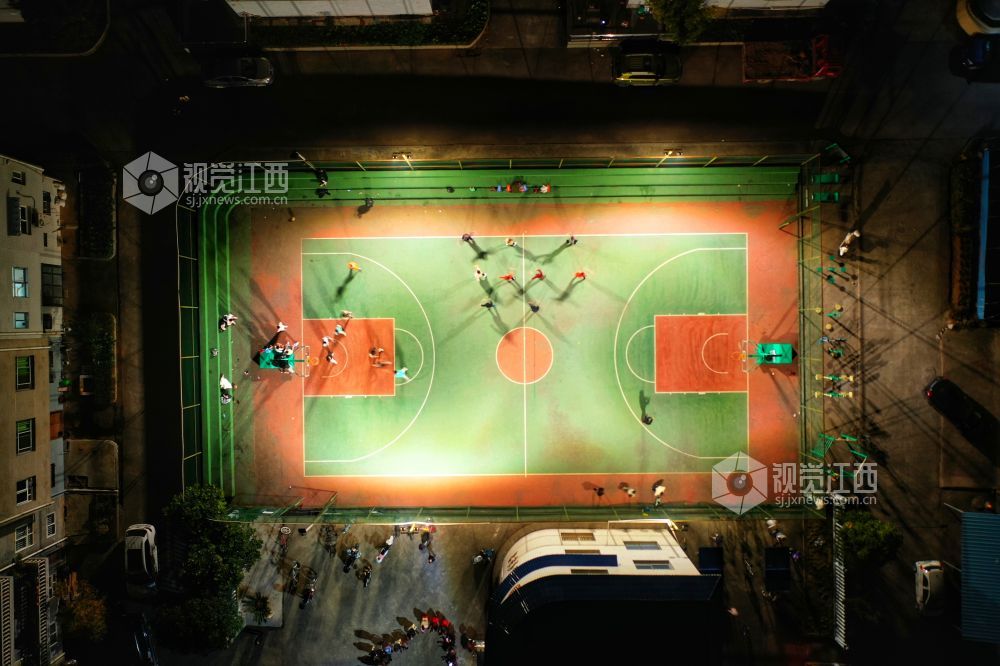 2021年12月10日,江西省萍乡市芦溪县芦溪镇温埠管理处篮球场灯火通明,村民在健身运动。近年来,芦溪县芦溪镇温埠管理处党支部坚持以党建为引领,根据村民健身休闲需求,在辖区内建造篮球场、健身器材场等健身场地,免费向村民开放,满足村民锻炼活动的需求。