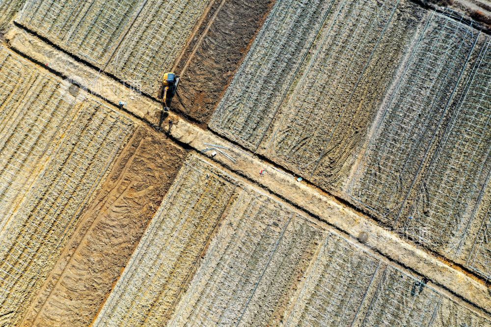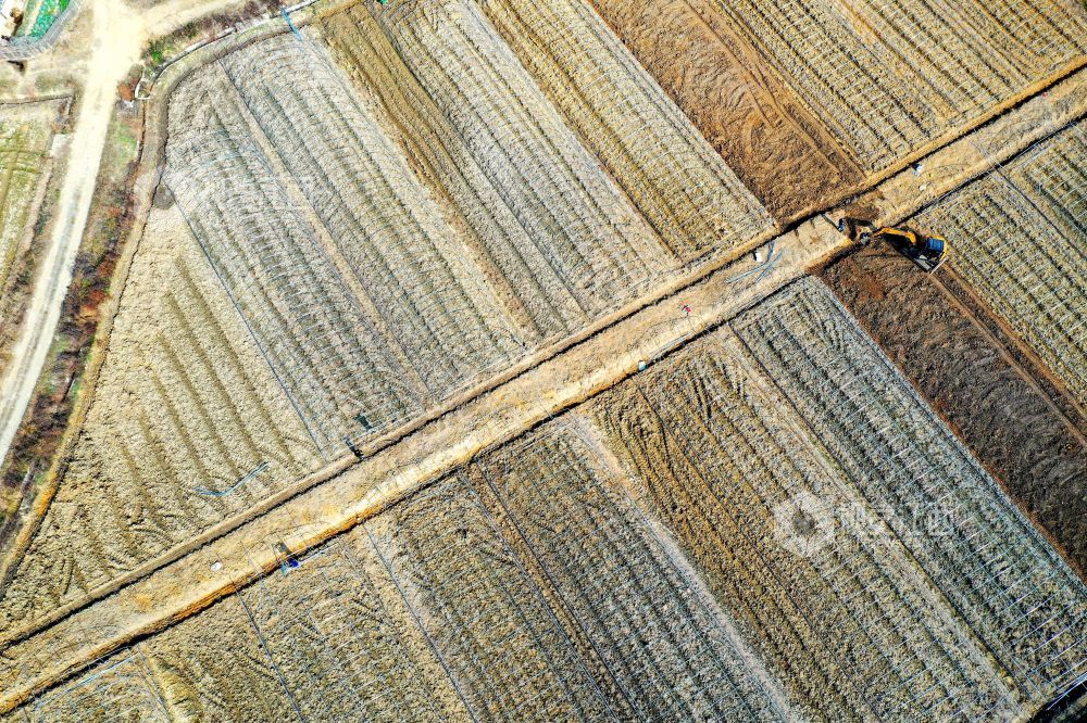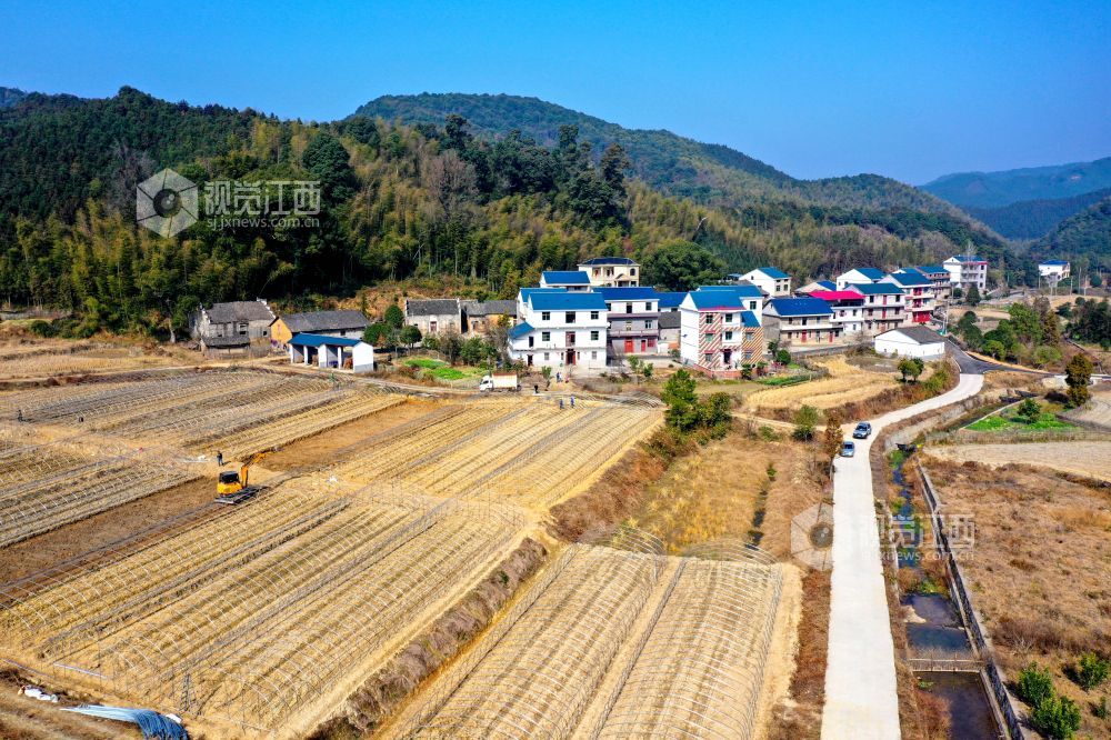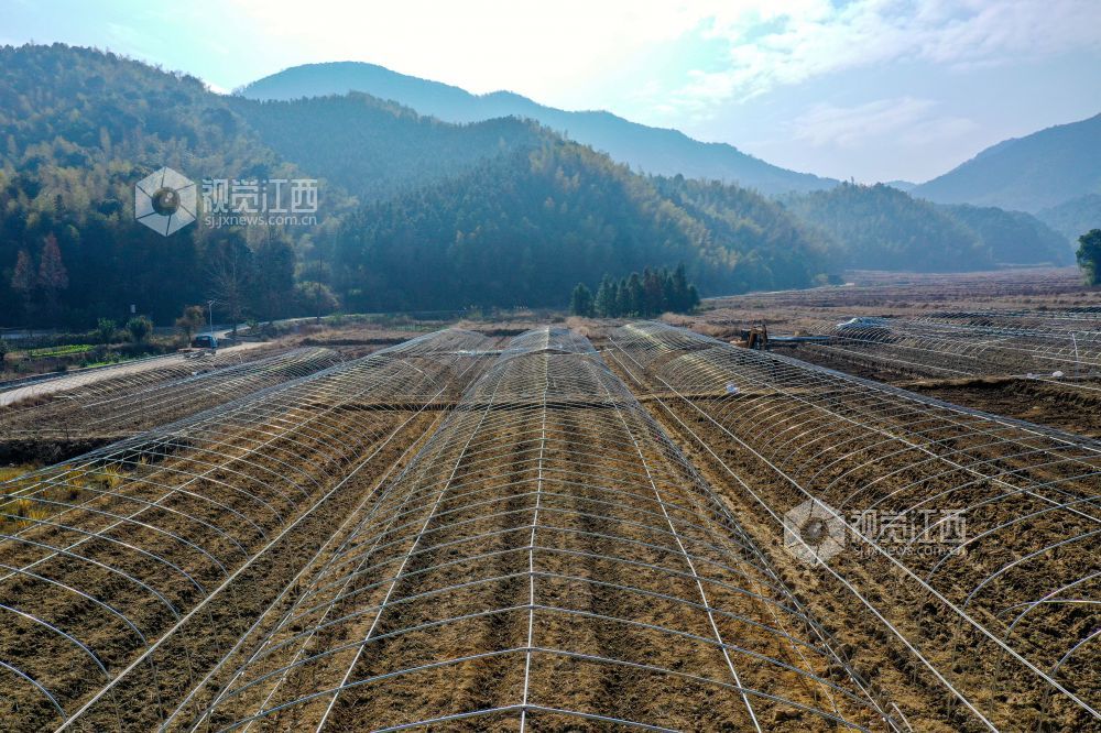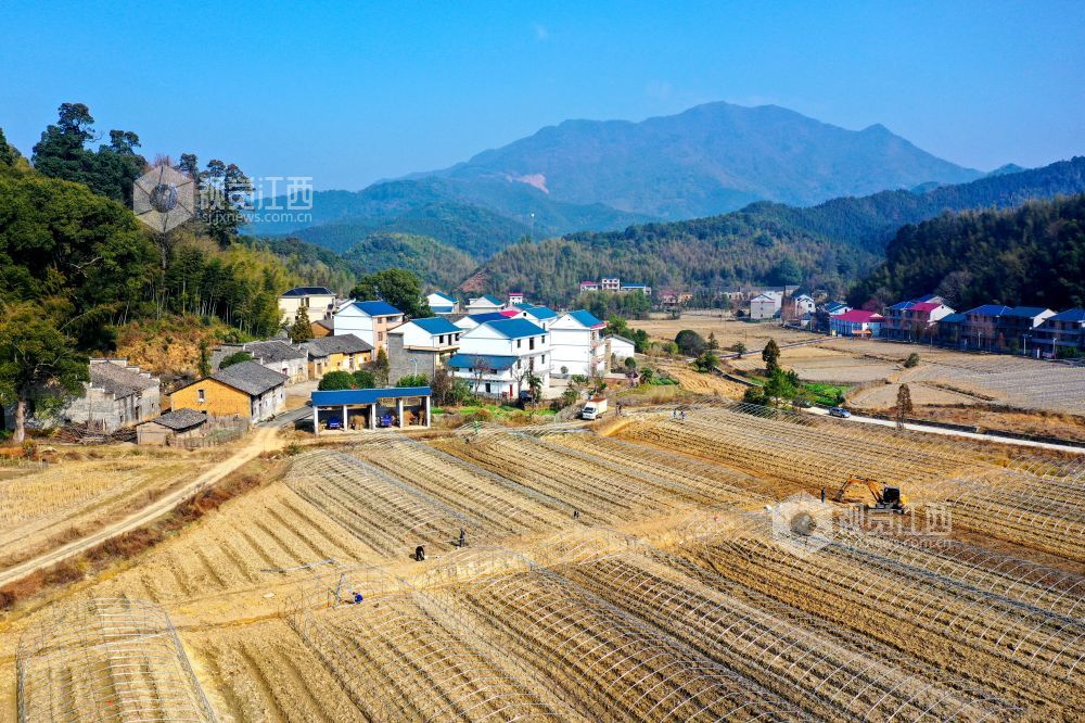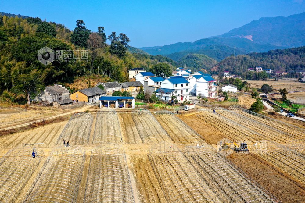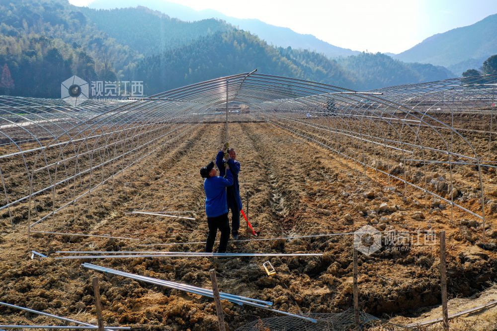 2021年12月15日,江西省吉安市吉水县双村镇连西村热火朝天,村民正在搭建蔬菜大棚,利用冬闲时节种植蔬菜供应市场。
