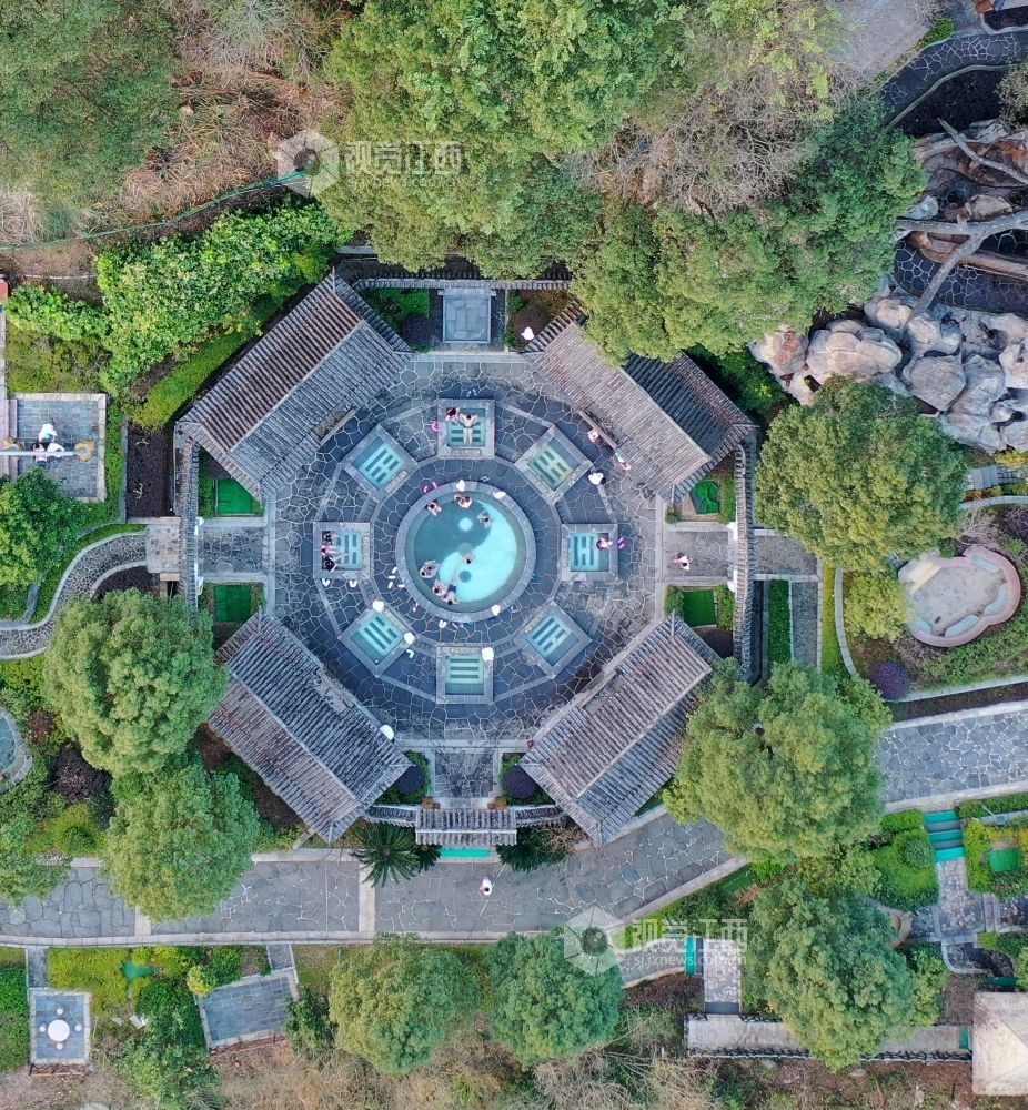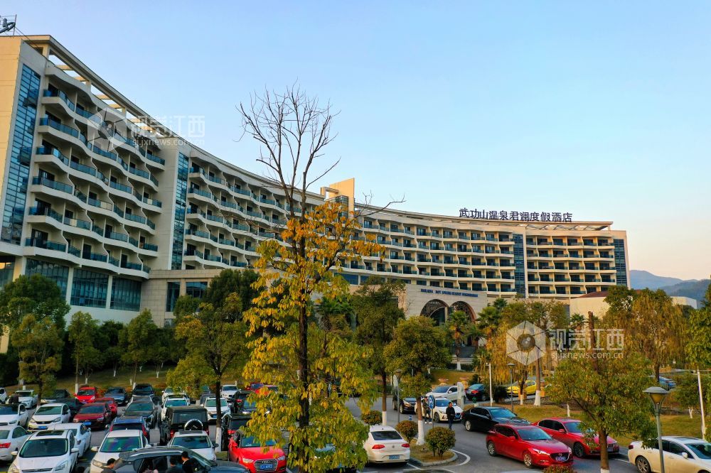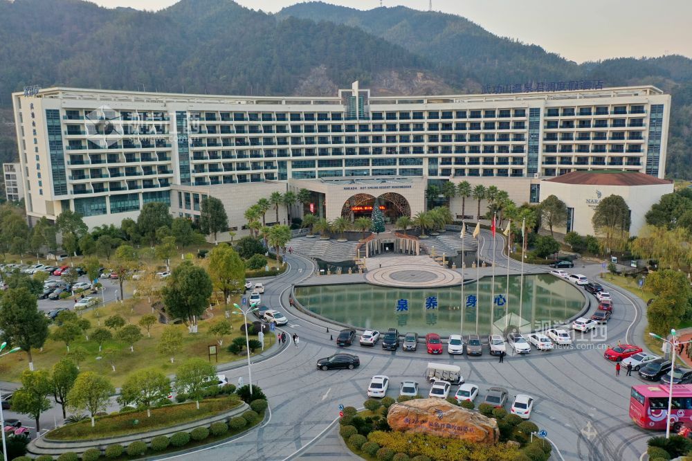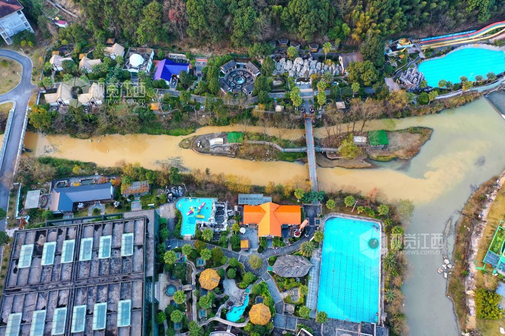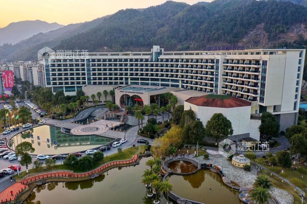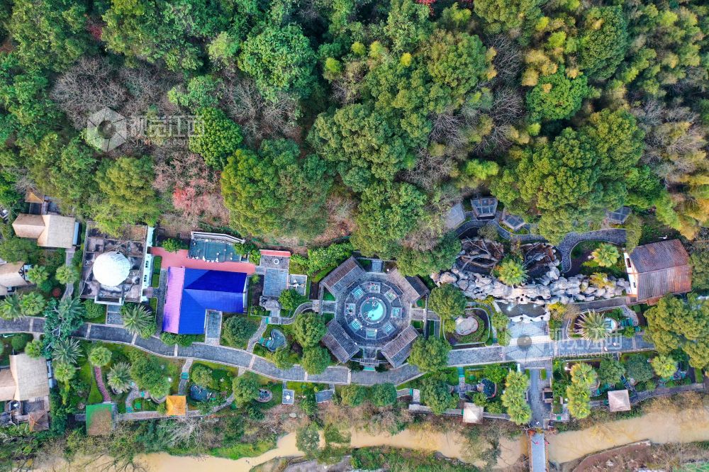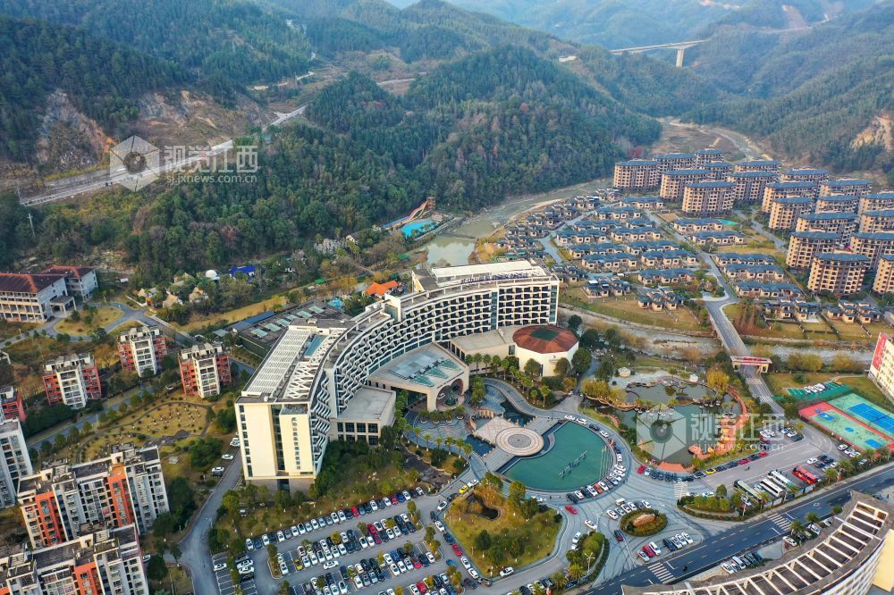 2021年12月18日,无人机航拍江西省萍乡市武功山万龙山温泉小镇。