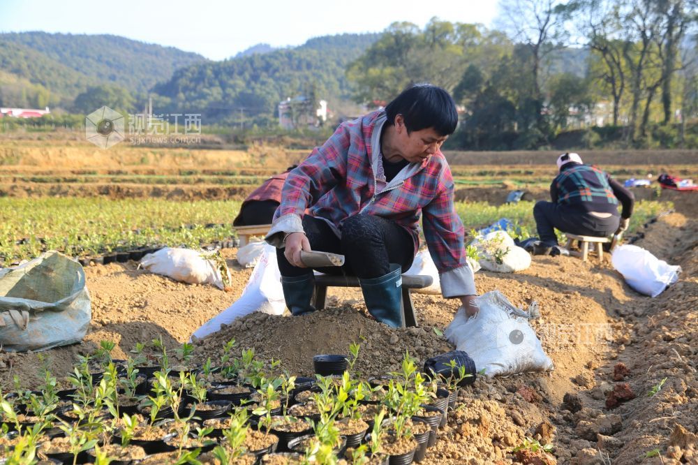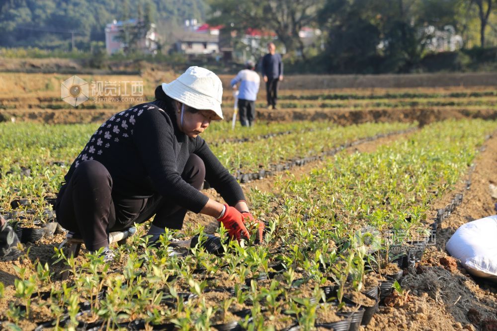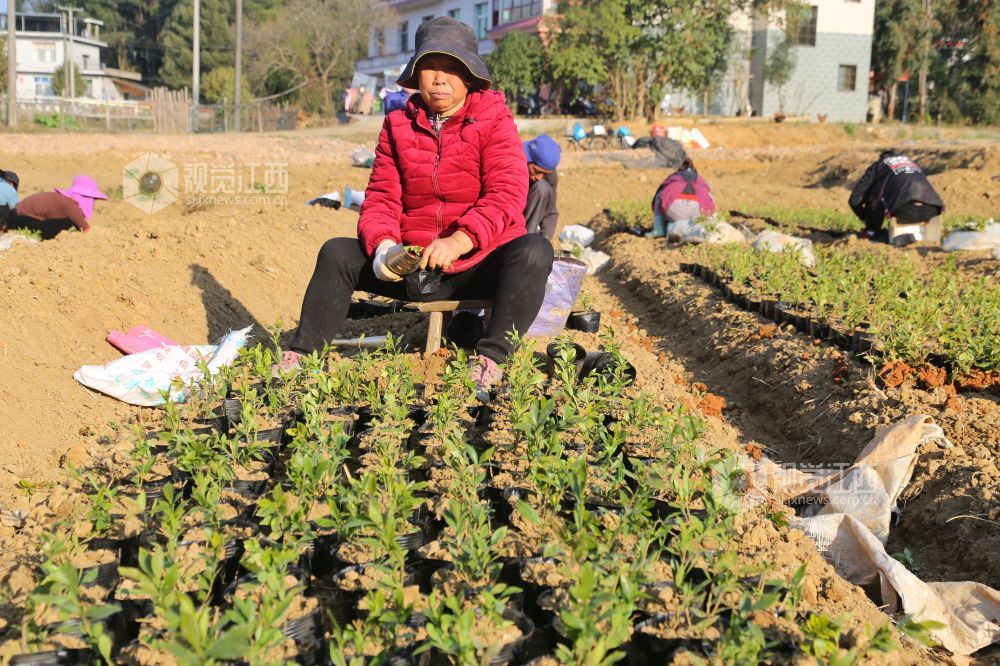 2021年12月21日,江西省萍乡市芦溪县宣风镇盘田村花卉苗木基地,农户在忙着整理苗木,一片繁忙的景象。