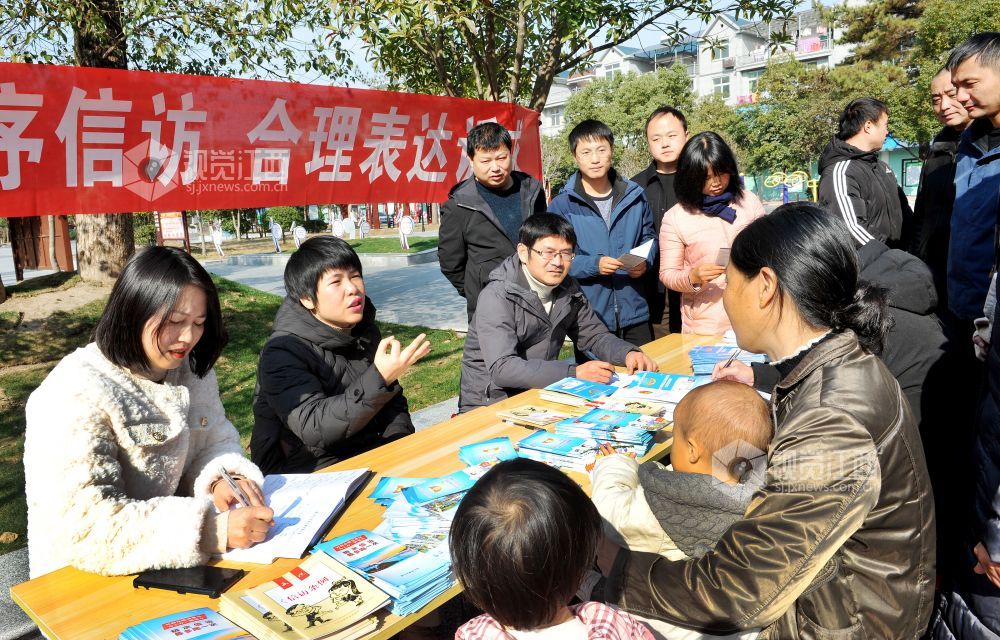 2021年12月31日,江西省德兴市信访局会同该市花桥镇党员干部在该镇金城社区广场现场接待来访的群众。