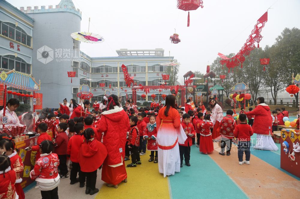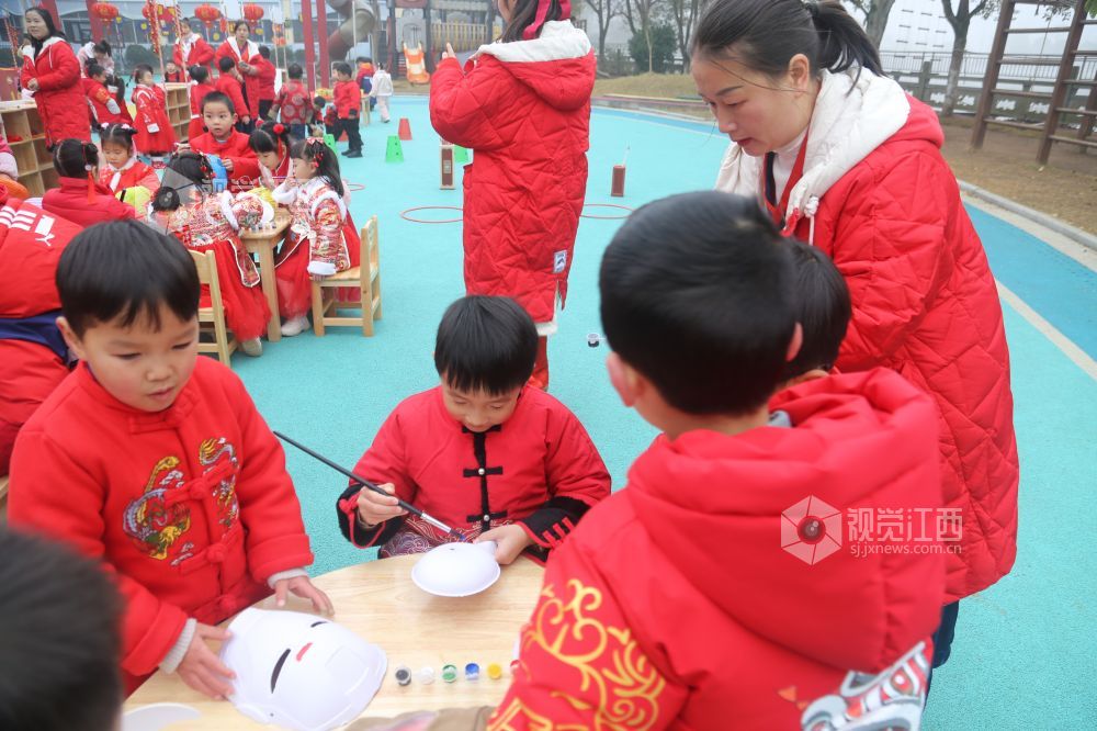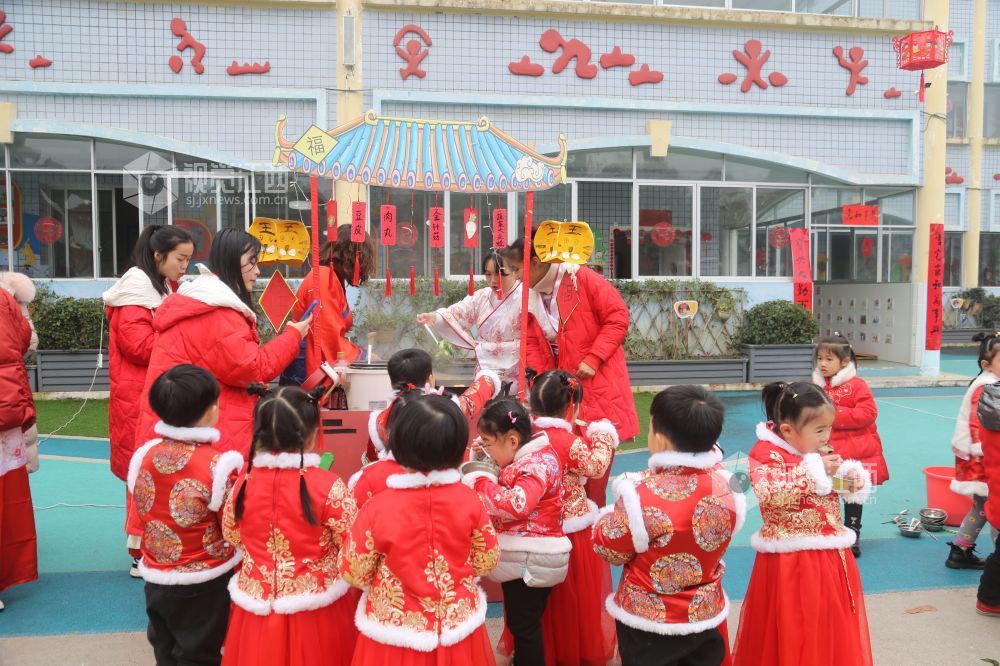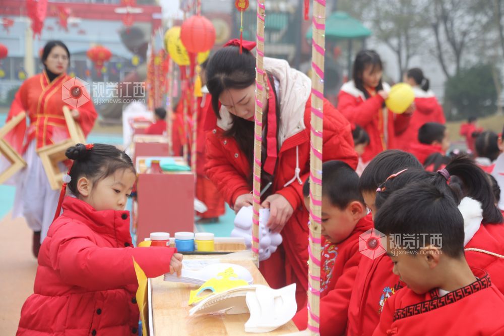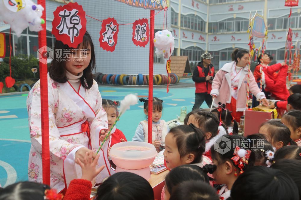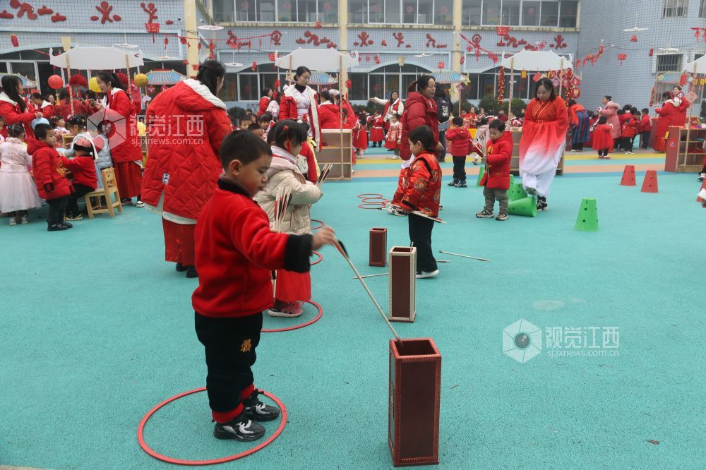 2021年12月31日,江西省萍乡市芦溪县保育院内,孩子们正在参加“越千年 寻年味”庆元旦迎新年为主题的“庙会”活动。