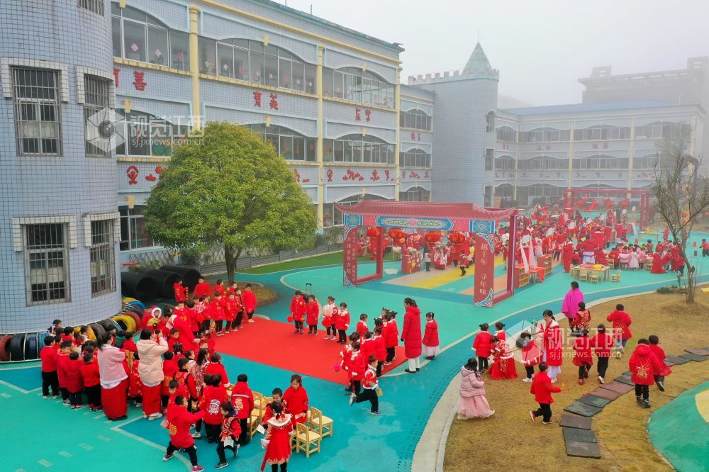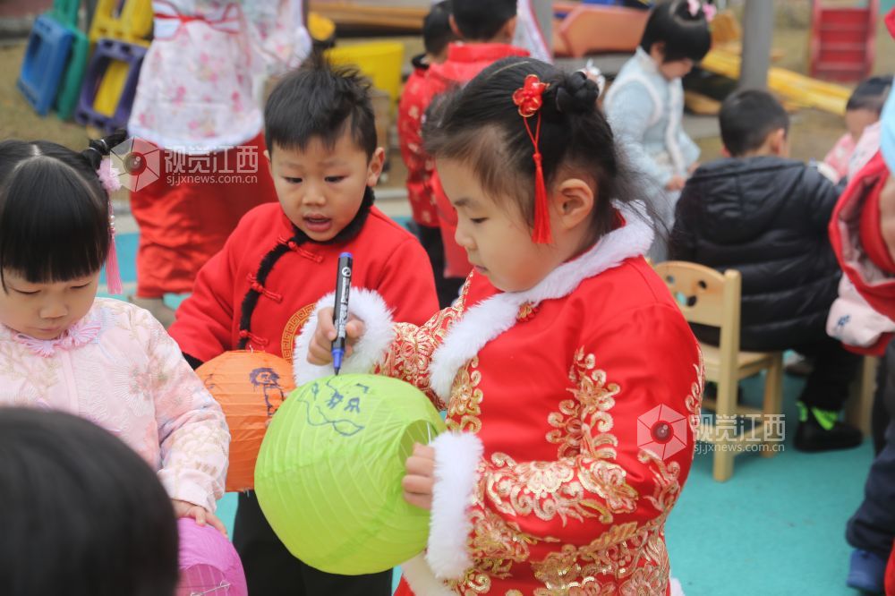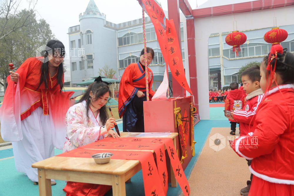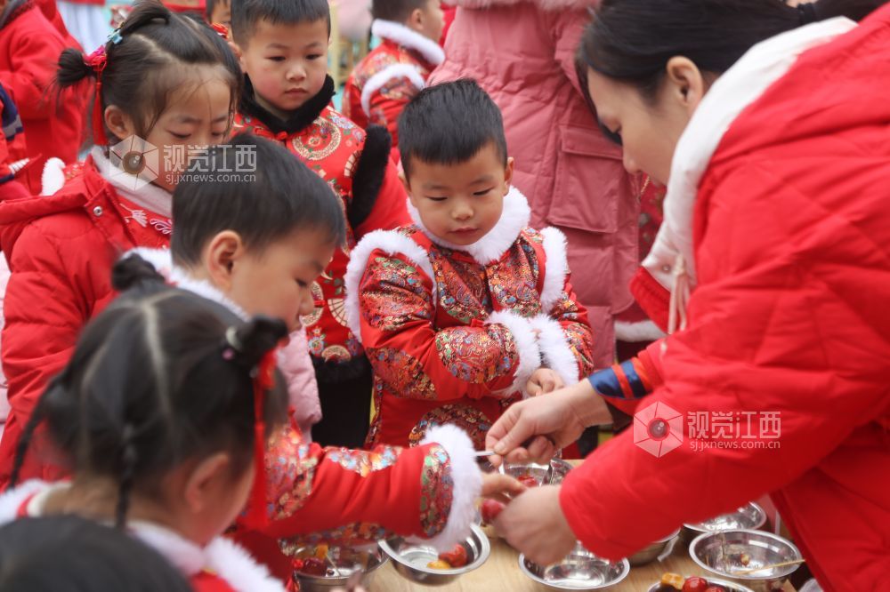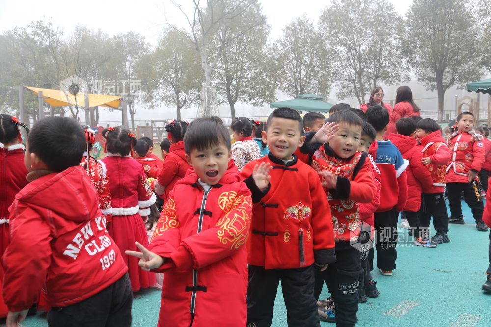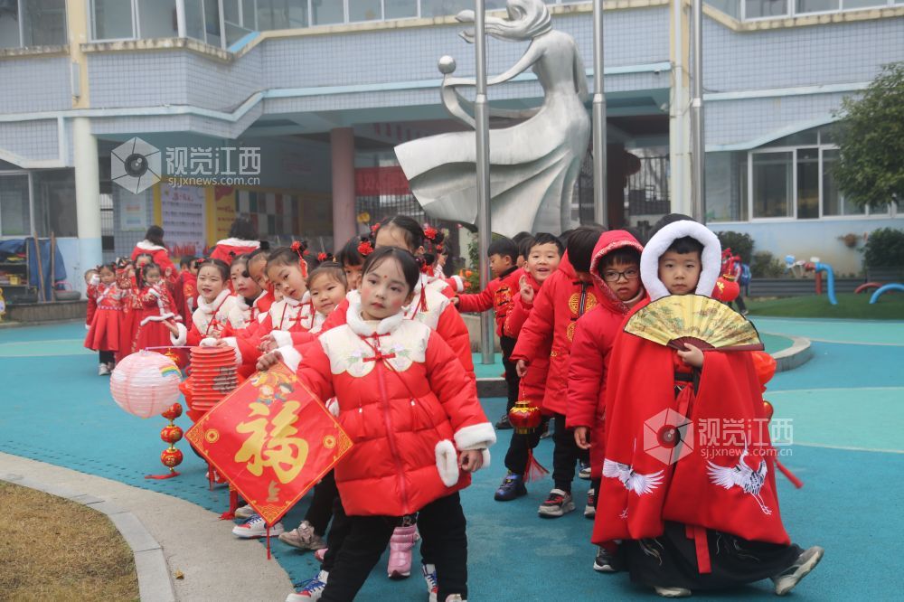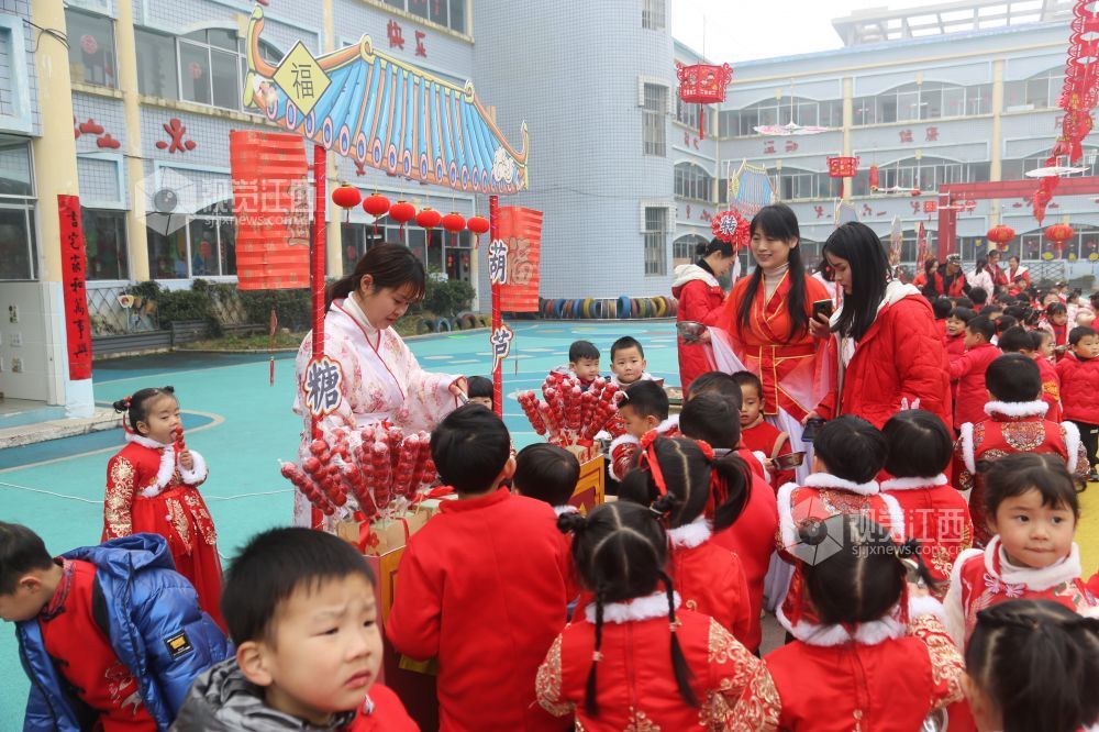 2021年12月31日,江西省萍乡市芦溪县保育院内,孩子们正在参加“越千年 寻年味”庆元旦迎新年为主题的“庙会”活动。