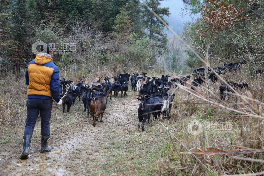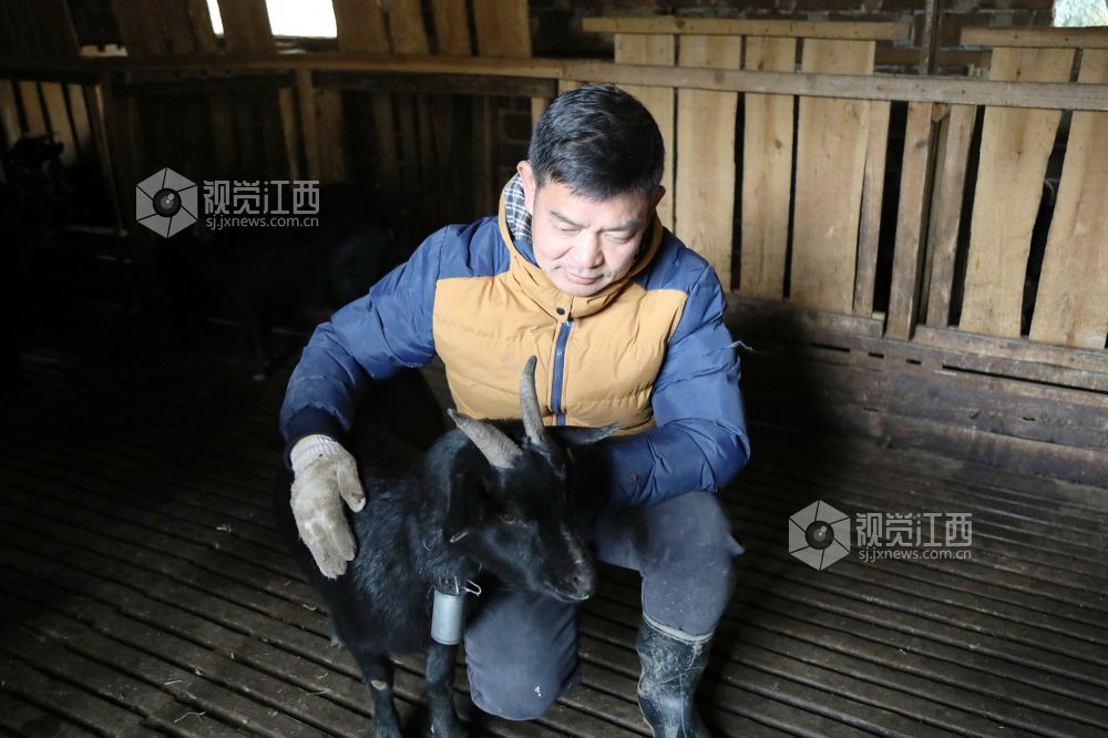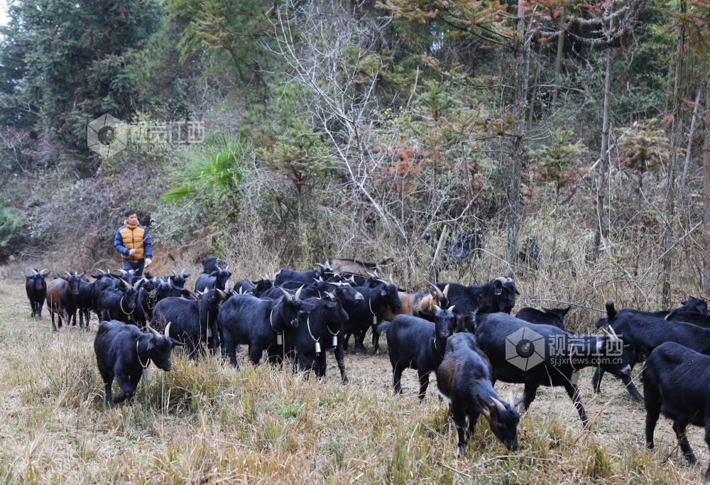 1月11日,江西省莲花县六市乡太沙村农民王小昌正在喂养黑山羊。太沙村地处大山深处,山林面积一万多亩,养殖牛、羊具有得天独厚的条件,王小昌每年出栏黑山羊100多只,年收入超过10万元。