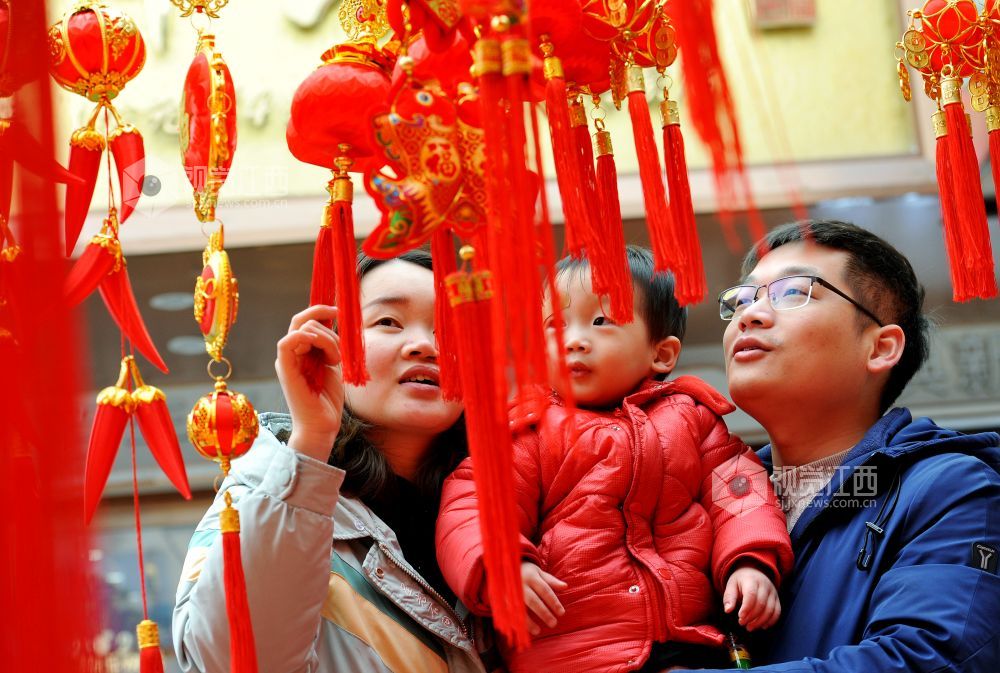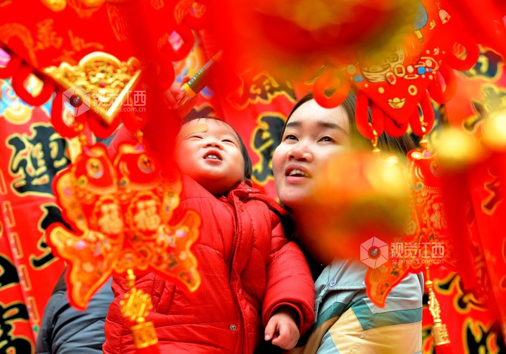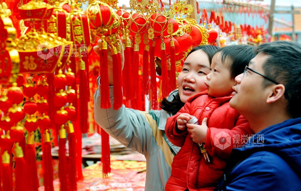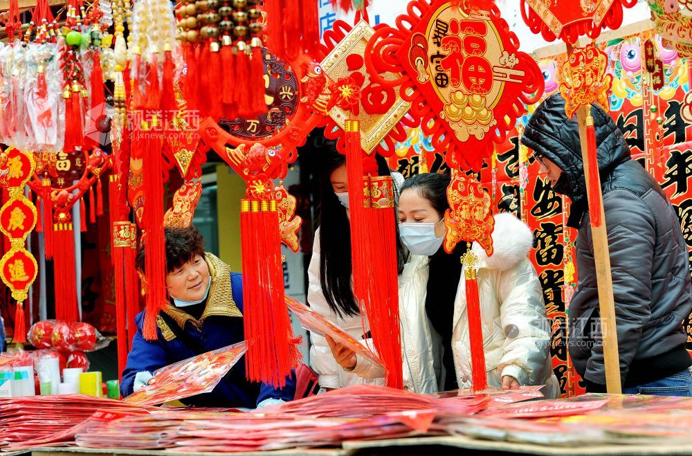 当天,在江西省德兴市的偏远乡村年货市场异常红火,人们争相选购自己喜爱的“中国红”回家用于装点新年。红红的年货饰品把富裕起来的山村农家装点尤为靓丽,更为原本美丽的乡村春节营造出浓浓的喜庆氛围。