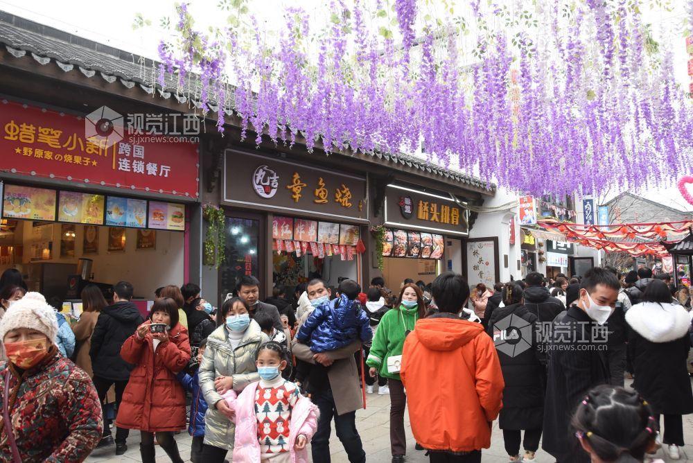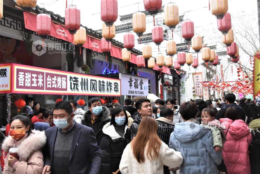 2022年2月4日,大年初四,当日立春,江西省鄱阳县国家级旅游休闲街区——饶州古镇热闹非凡,街区里游人如潮。市民游人在这里在ー边欣赏美景的同时,ー边品尝鄱湖饶州美食,街区内喜气洋洋年味浓浓。