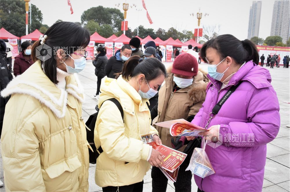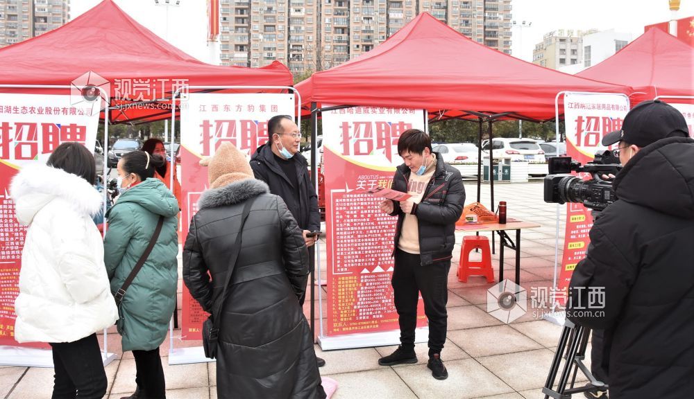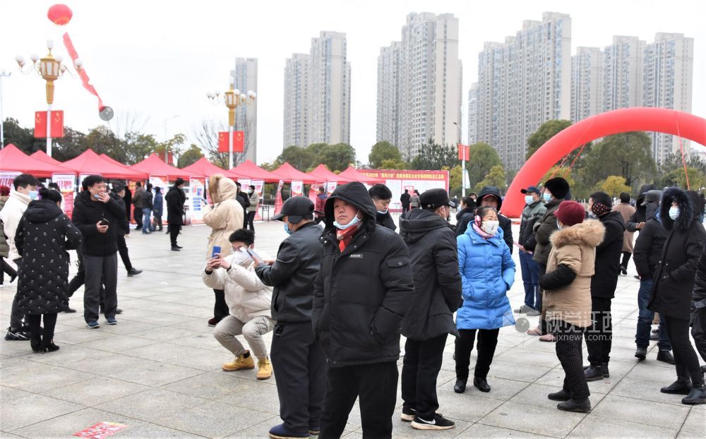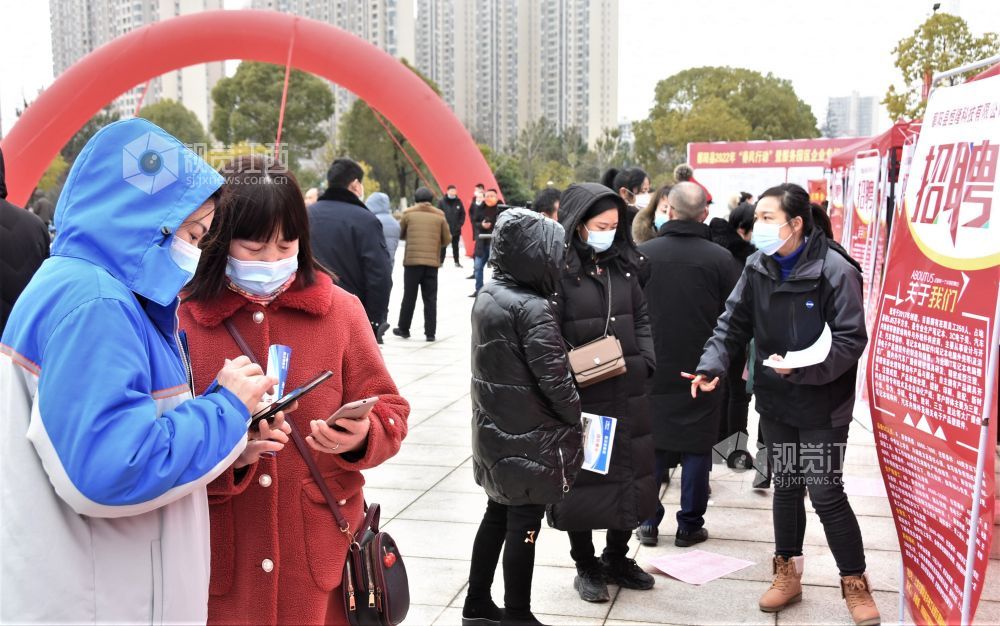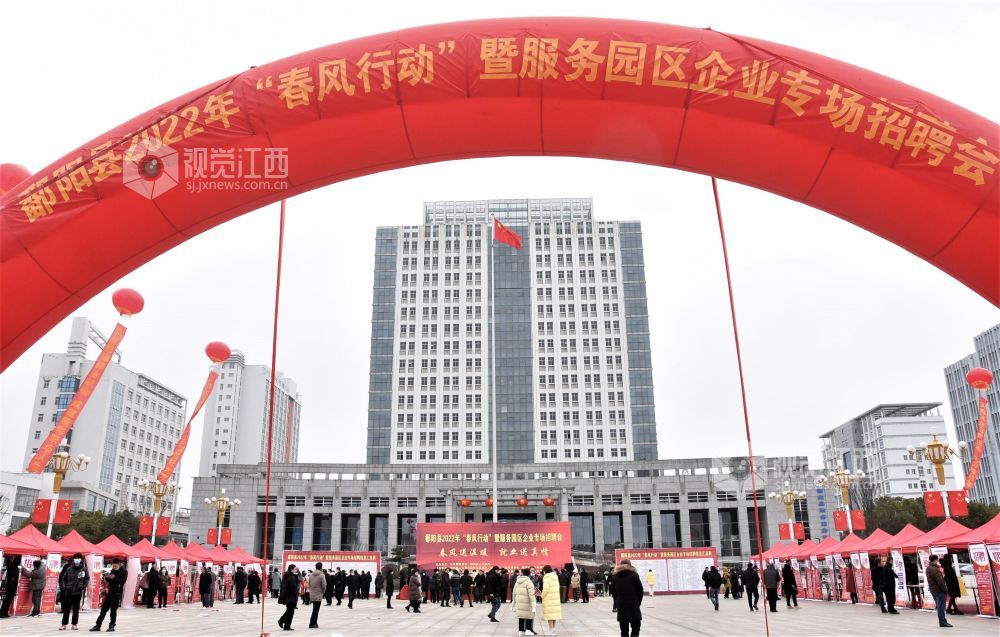 2022年2月8日,江西省鄱阳县举办的2022年“春凤行动”暨服务园区企业专场招聘会在鄱阳湖大厦广场举行。上午八时,回乡过年的各乡镇务工人员寻找自己合适的工位,满足自己在家门口就业的愿望,园区招工工作人员热情介绍真心服务,深受返乡创业人员的称赞。