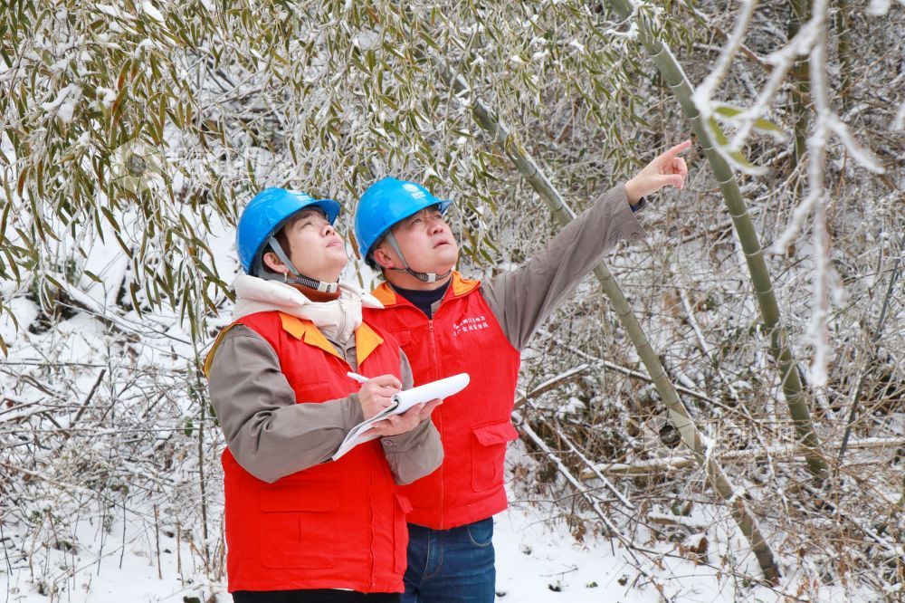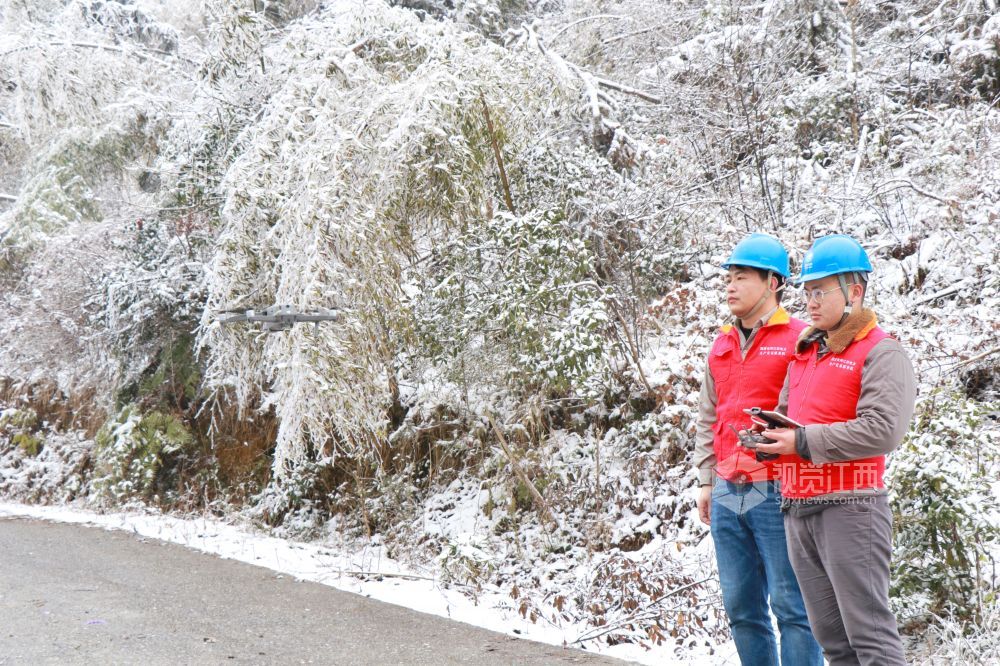 2022年2月21日,一场大雪过后,为保障江西省萍乡市芦溪县长丰乡1000户居民用电,国网江西萍乡芦溪县供电公司员工带着无人机,冒着严寒,对长丰乡的10千伏长丰开闭所线路进行特巡,查看线路的履冰以及线路设备缺陷情况,并进行了详细记录,确保雪后电网安全稳定运行。